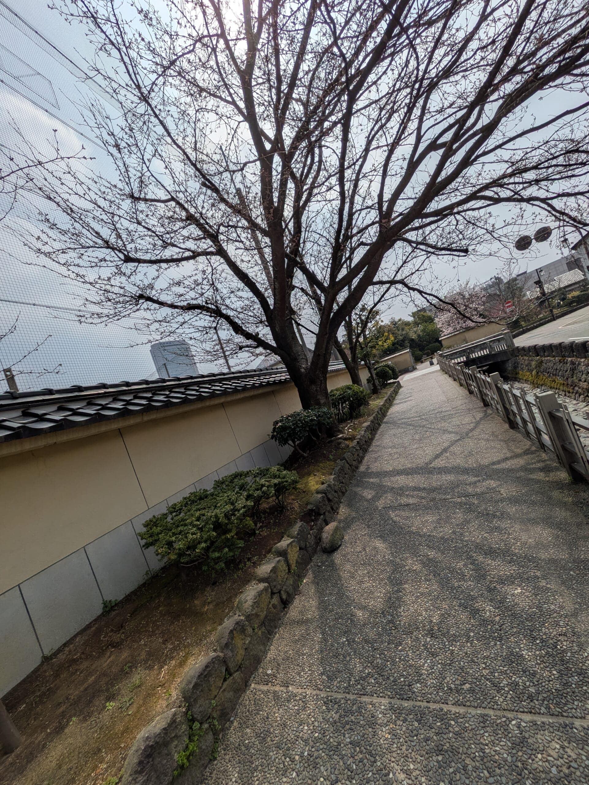 こちらの左側の立派な塀は、中学校の運動場を囲んでいます