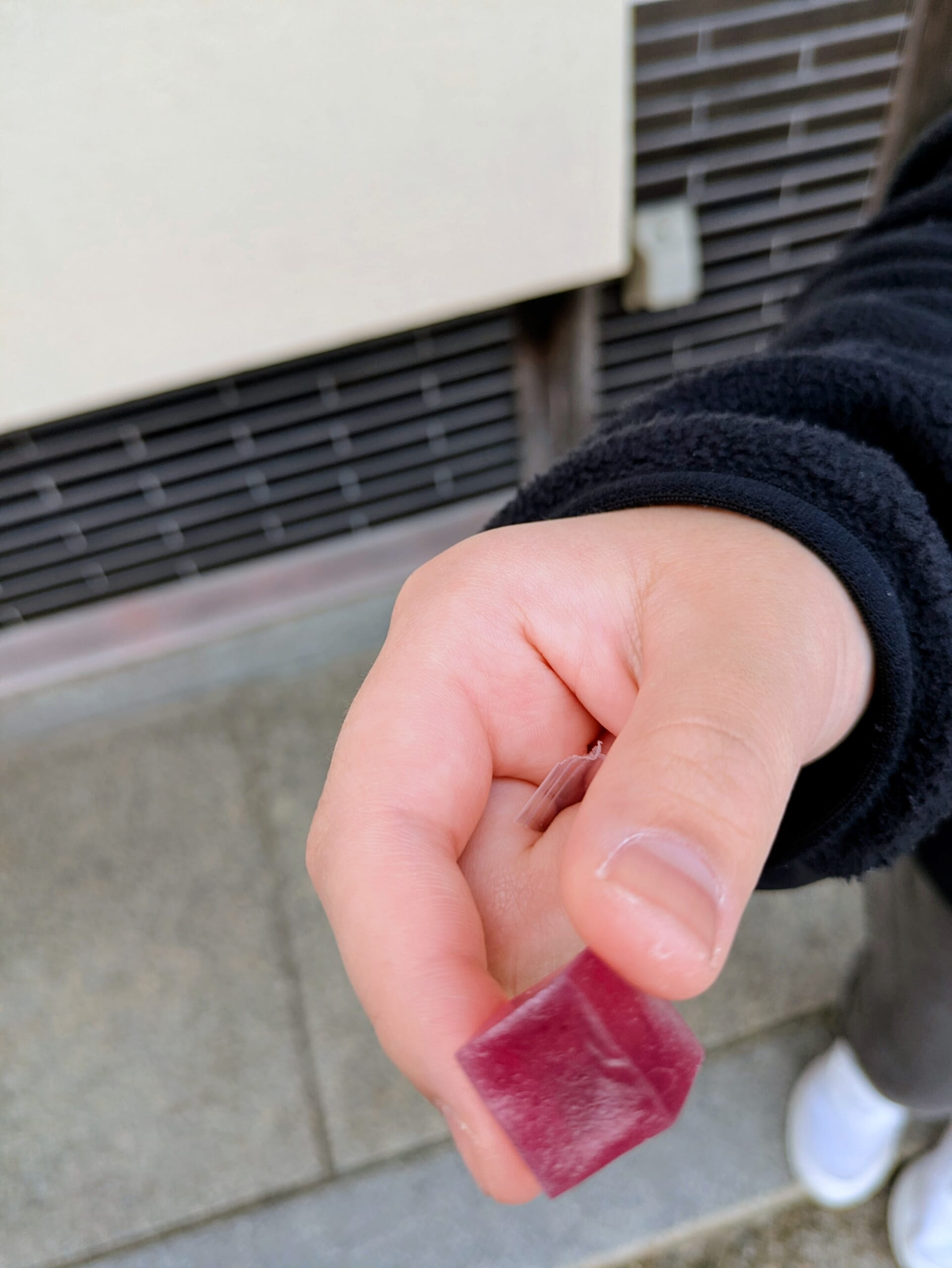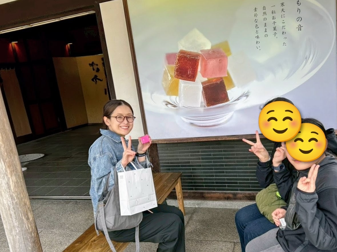 羊羹と寒天のお菓子“もりの音”を購入し、外のベンチでいただきました
