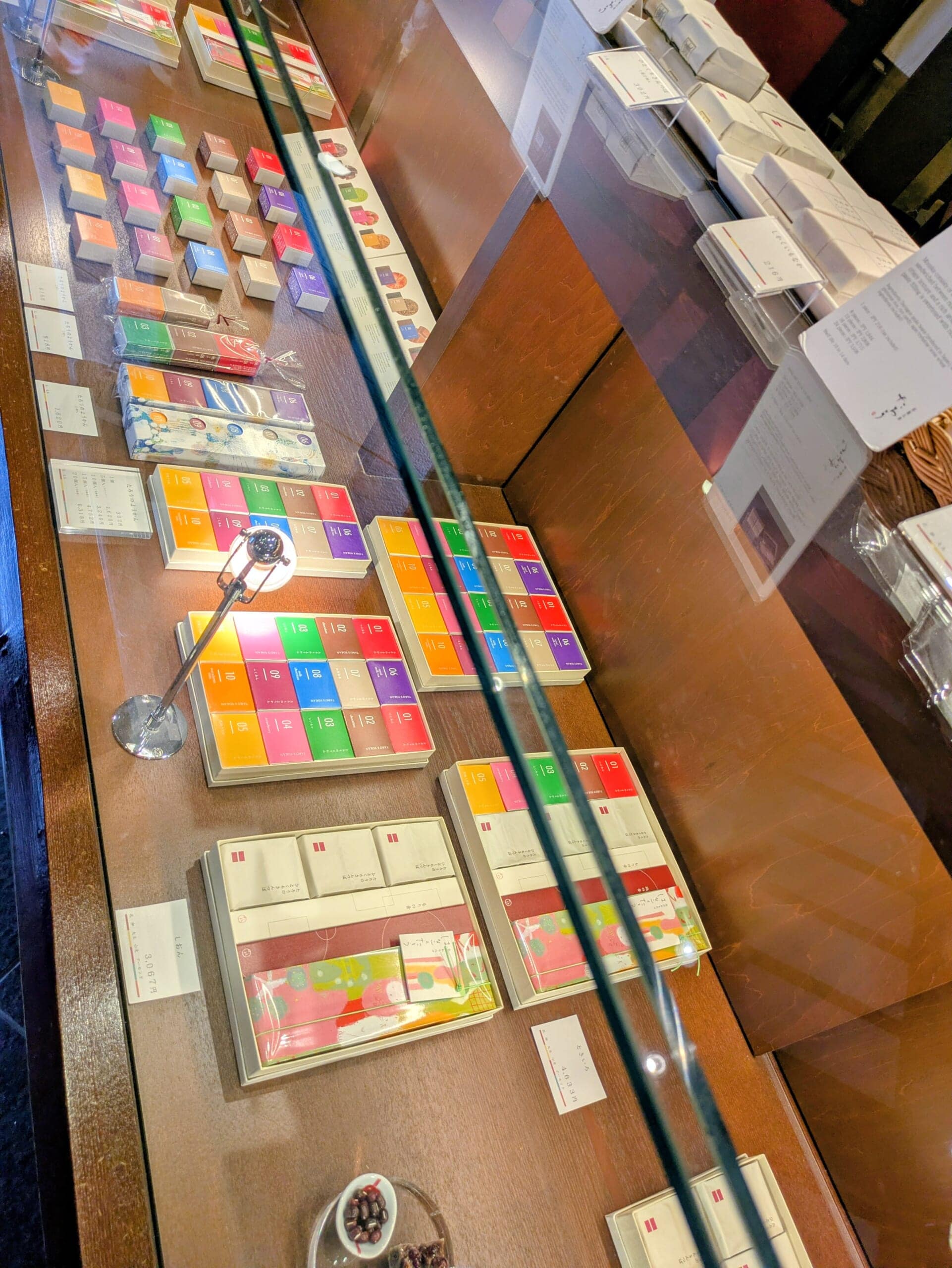 和飾りとショーケースの中に色とりどりの羊羹が並んだ店内はまるで宝石店のようでした