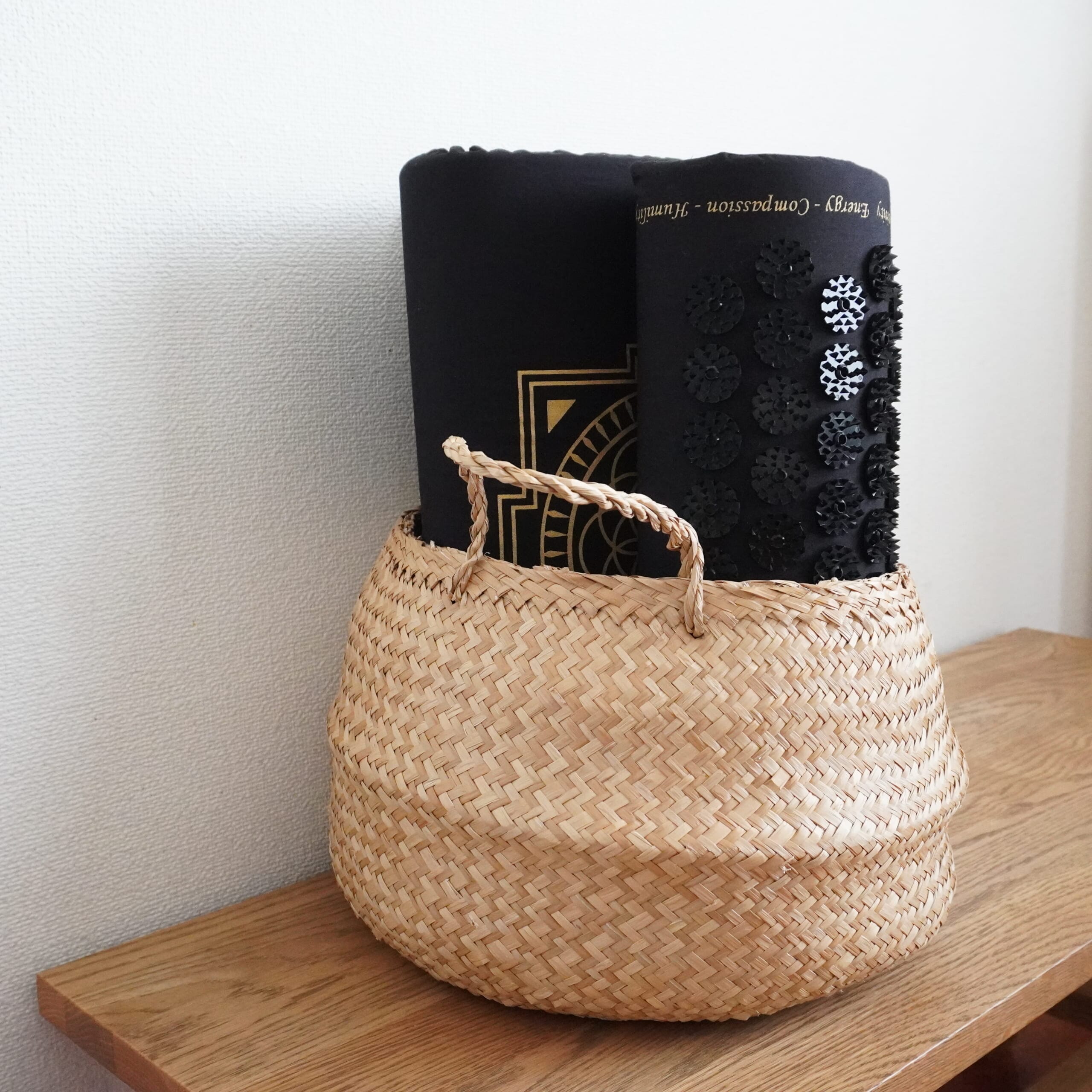 シャクティマットとシャクティピローは、家にあったIKEAのカゴに収納しています。