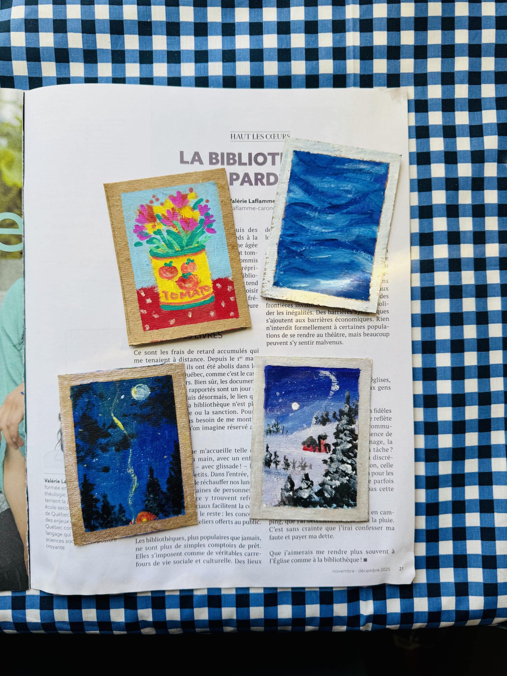 アメリカで『アーティストカード』なる小さい絵が流行っているようなので、厚紙に描いてみました。