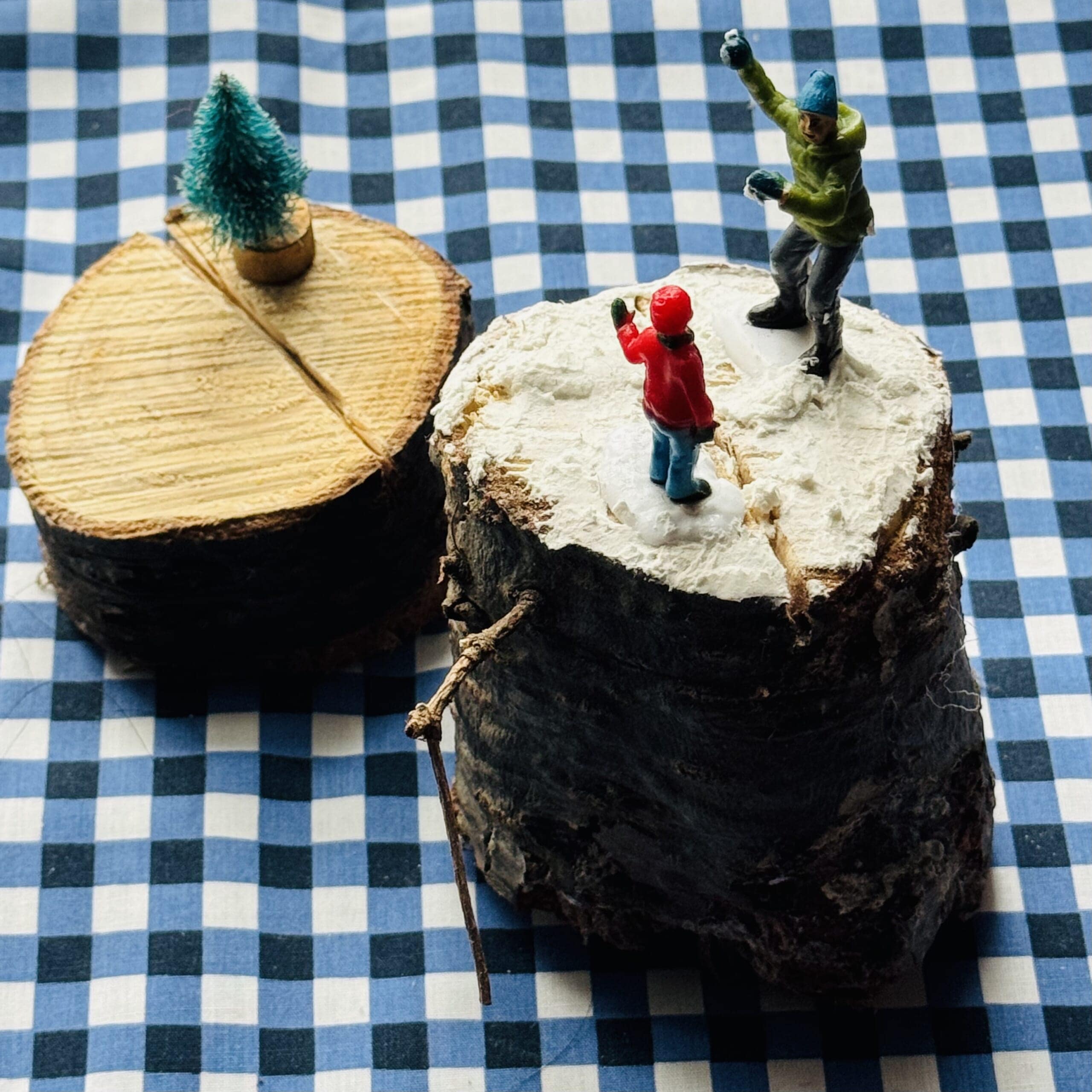 そして木の幹部分は輪切りにしてプクのクラフト資材として活躍するので、クリスマスツリーに捨てるところ全くなし!(枝はミニチュアの梯子やキャンプファイヤーを作ったりしています)