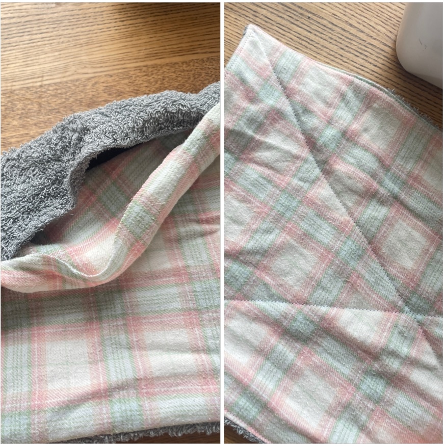 一応、タオルと布の組み合わせも少し考えて、かわいくなるように意識してます。