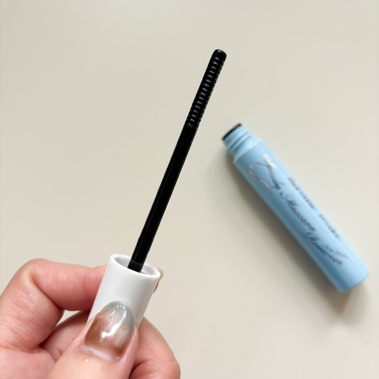 乾いた状態のまつげに根本からたっぷり塗ります。