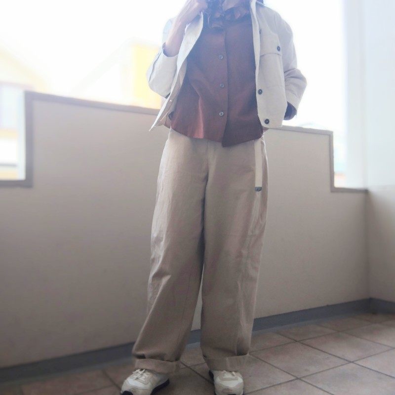 テーラードジャケットよりもう少しカジュアルが気分!手持ちのノーカラーのジャケットは、色が濃いので、ちょっと暑苦しくなるなぁ…と。