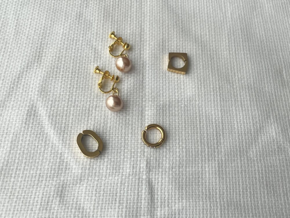 わたしは耳たぶが大変小さくピアスがあけられず、はめ込み型のイヤリングだと落ちてしまうので、ネジバネ式イヤリングがマスト。