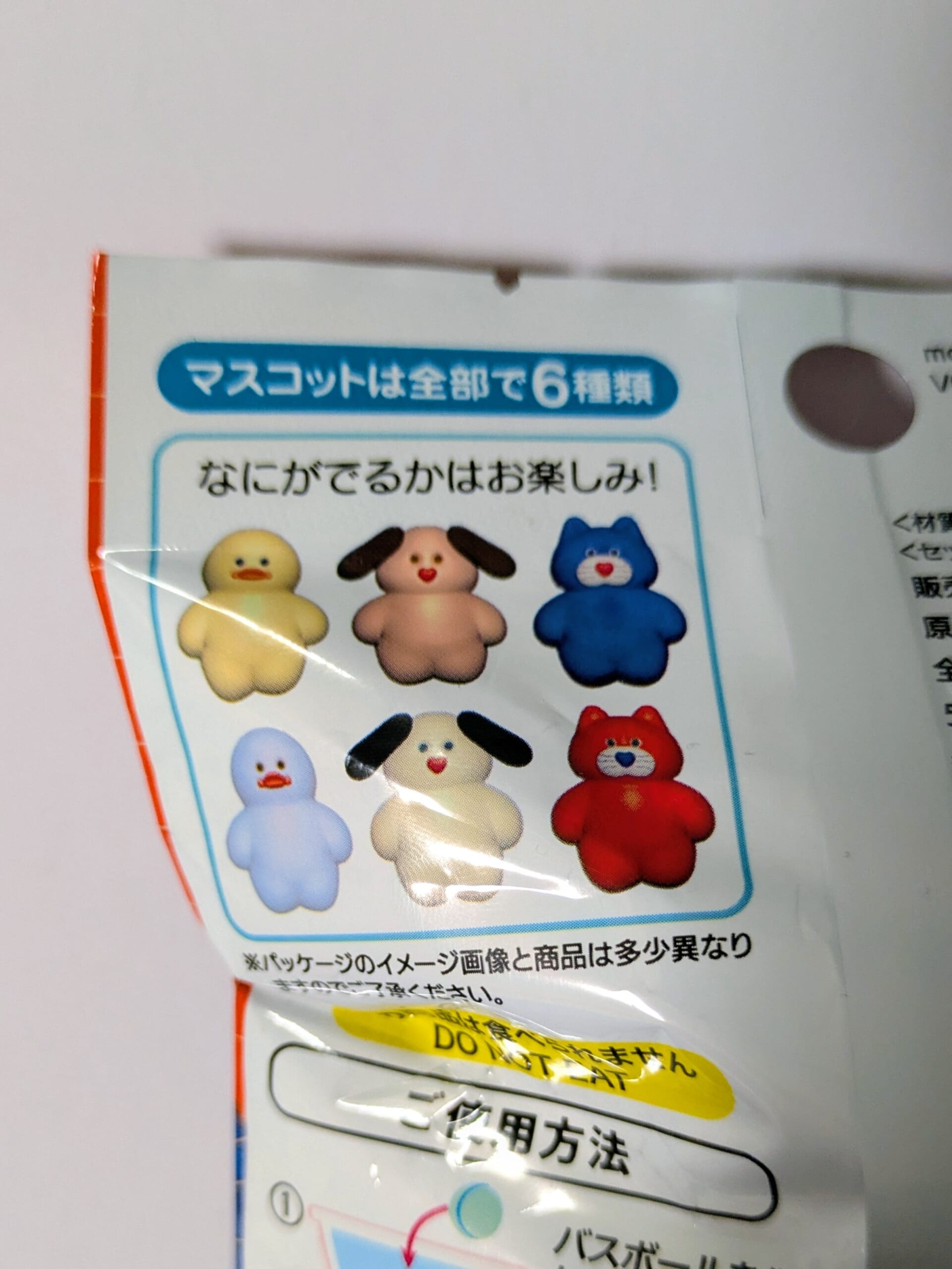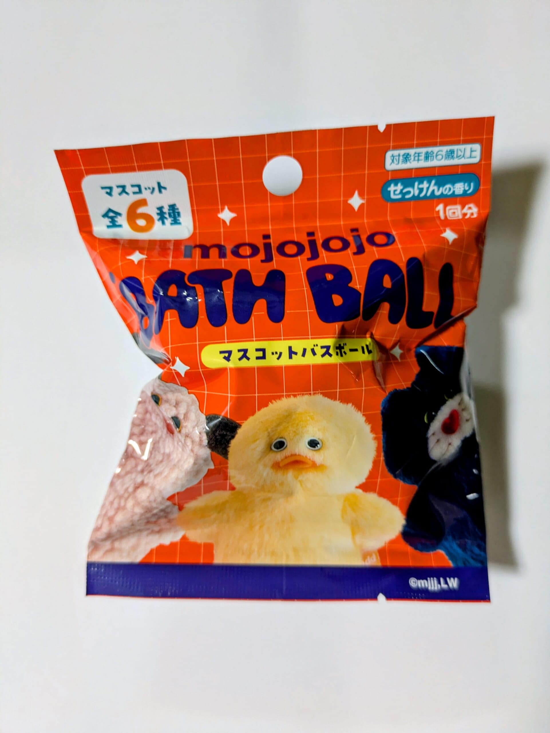 そんな大人気のmojojojoですが、バスボールが売られていたので購入しました(我が家はアピタのおもちゃ売り場で発見しました)