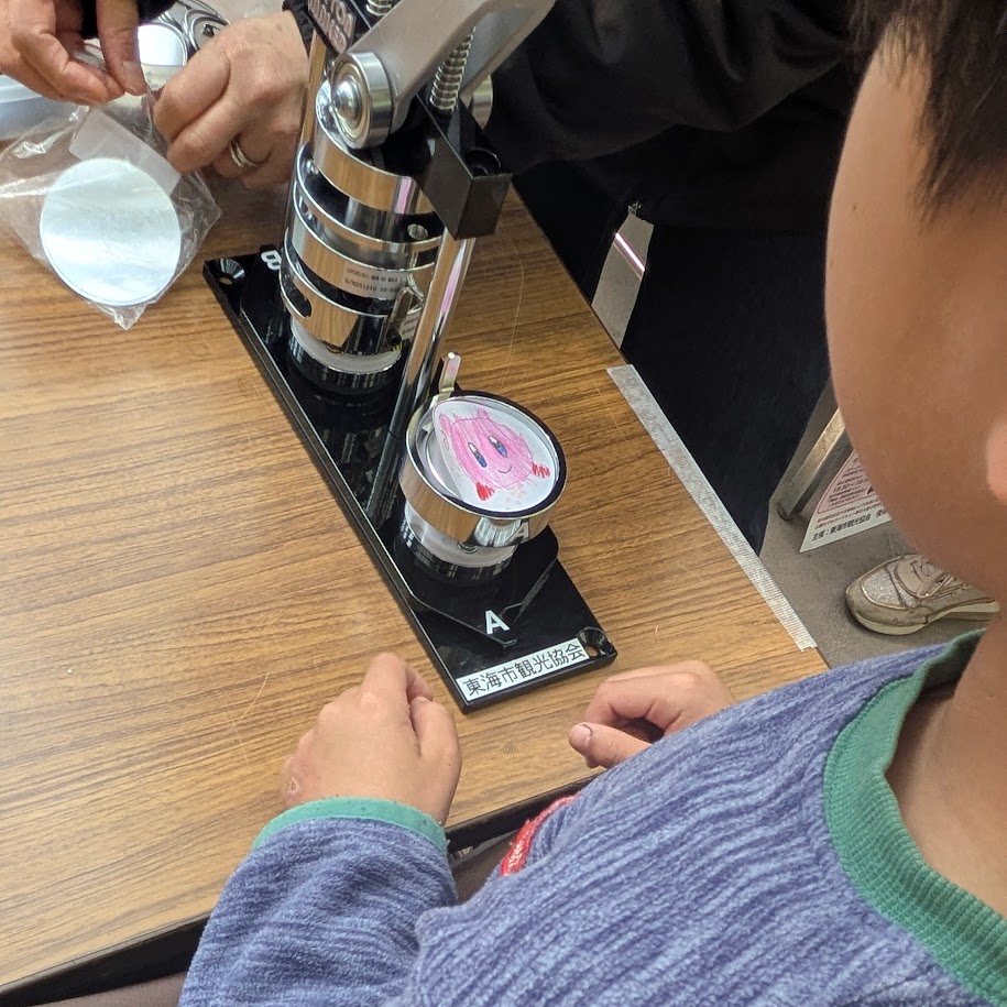 缶バッチ作りも初めての体験!自分の描いた絵がこんなすぐにバッチになると感動していました。