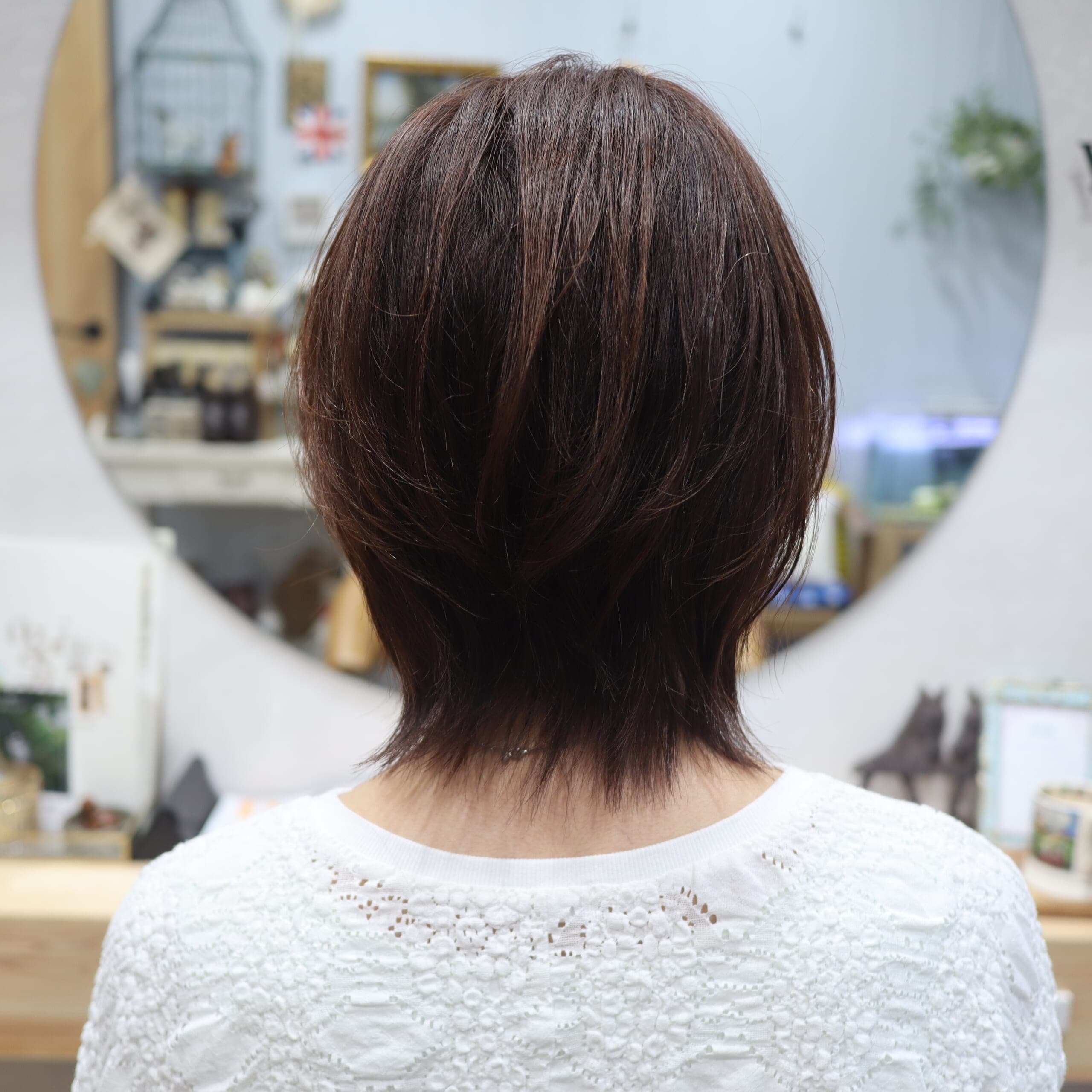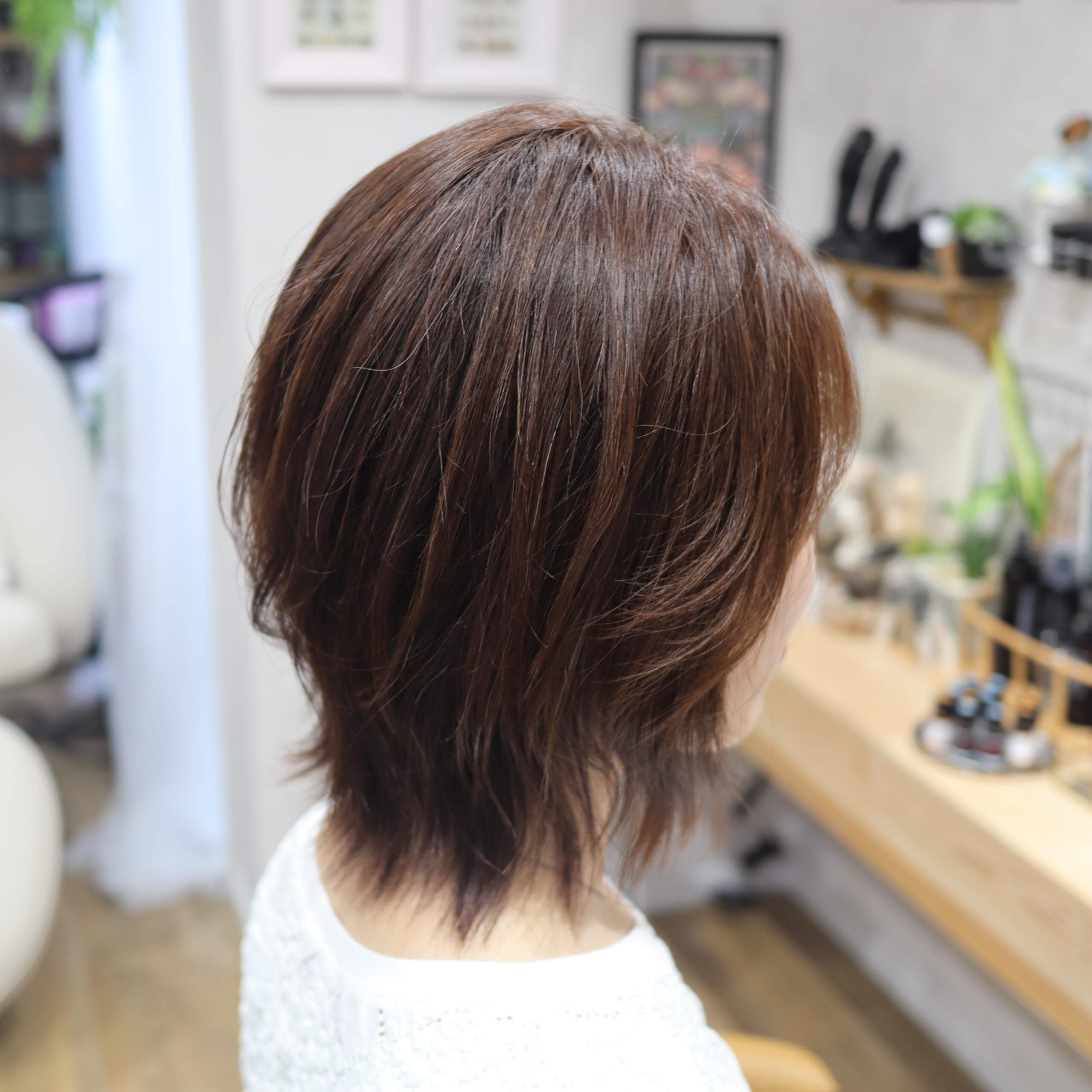 今回も、ショートまではいかず、レイヤーを入れて軽やかさと動きがでるシルエットに整えていただきました!