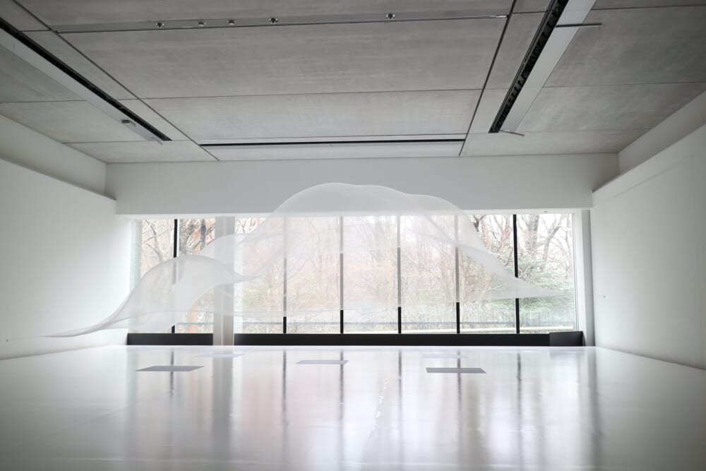 静かな空間で布が絶えず形を変えて動く様子は、いつまでも見つめていたくなる作品でした。