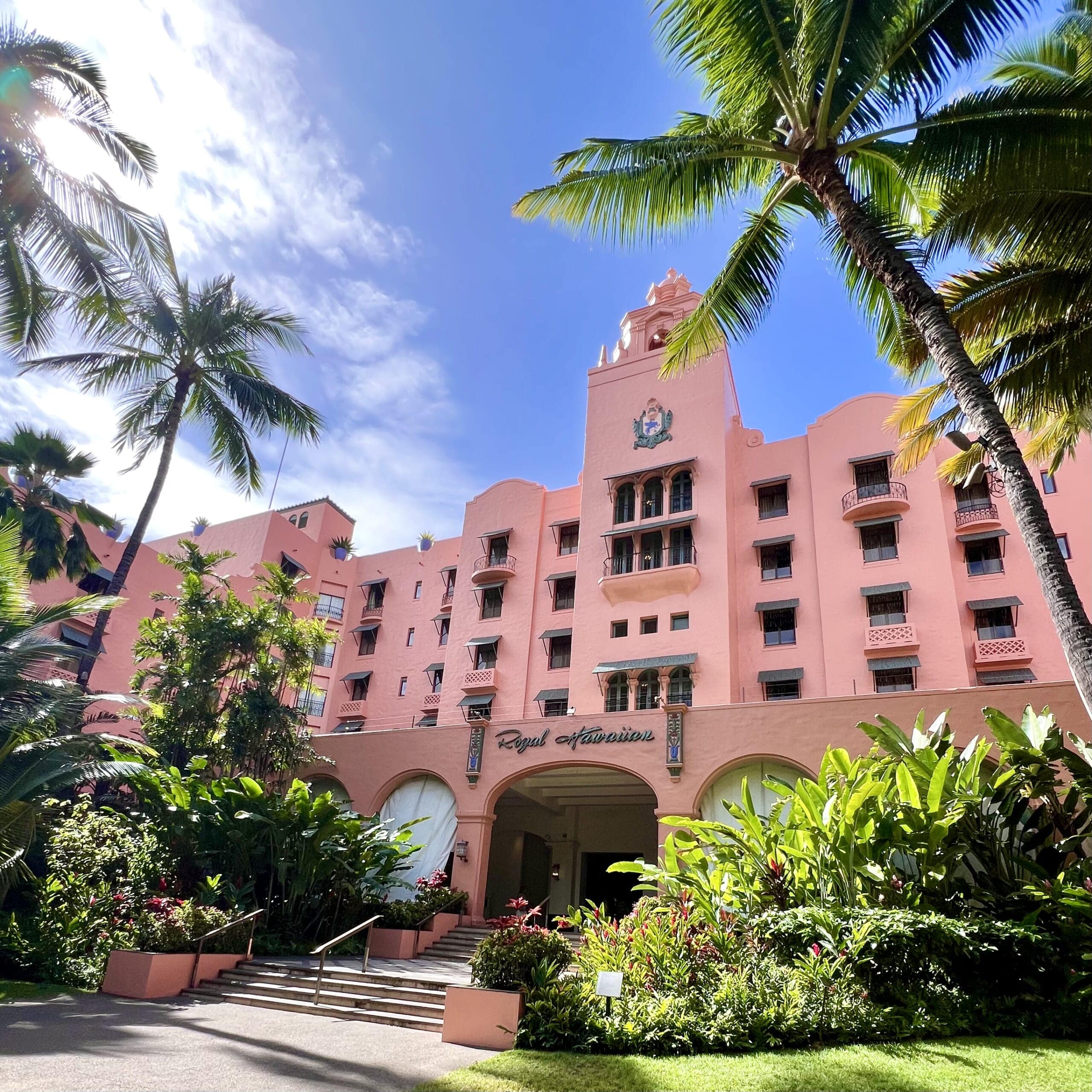 「太平洋のピンク・パレス」とも呼ばれるこのホテルは、上品なピンクと海や空のブルーとのコントラストが、本当にハワイらしくて大好きな場所です。