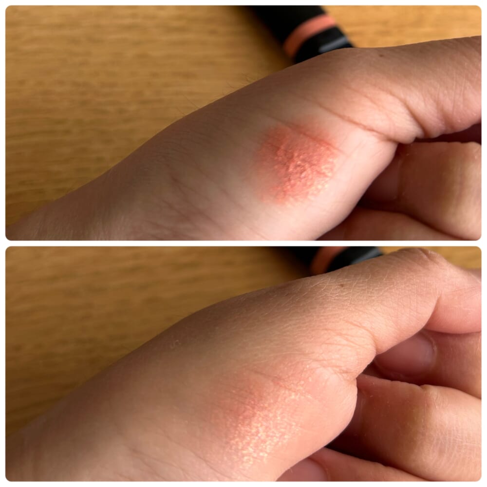 つけて馴染ませると、[写真下]のように、スーッと伸びて綺麗なラメがでます!