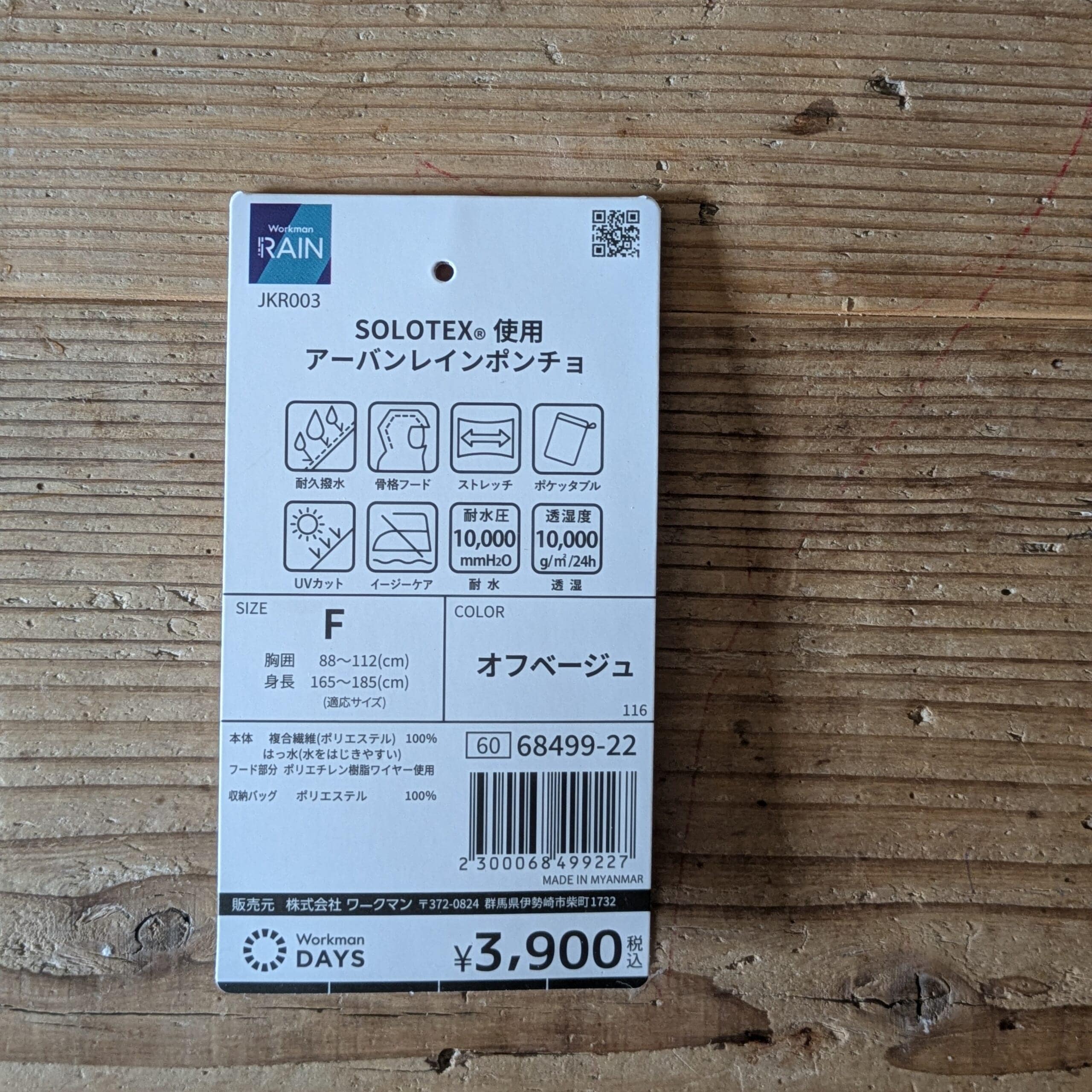 【ワークマン購入品】ソロテックス(R)使用アーバンレインポンチョ 3900円