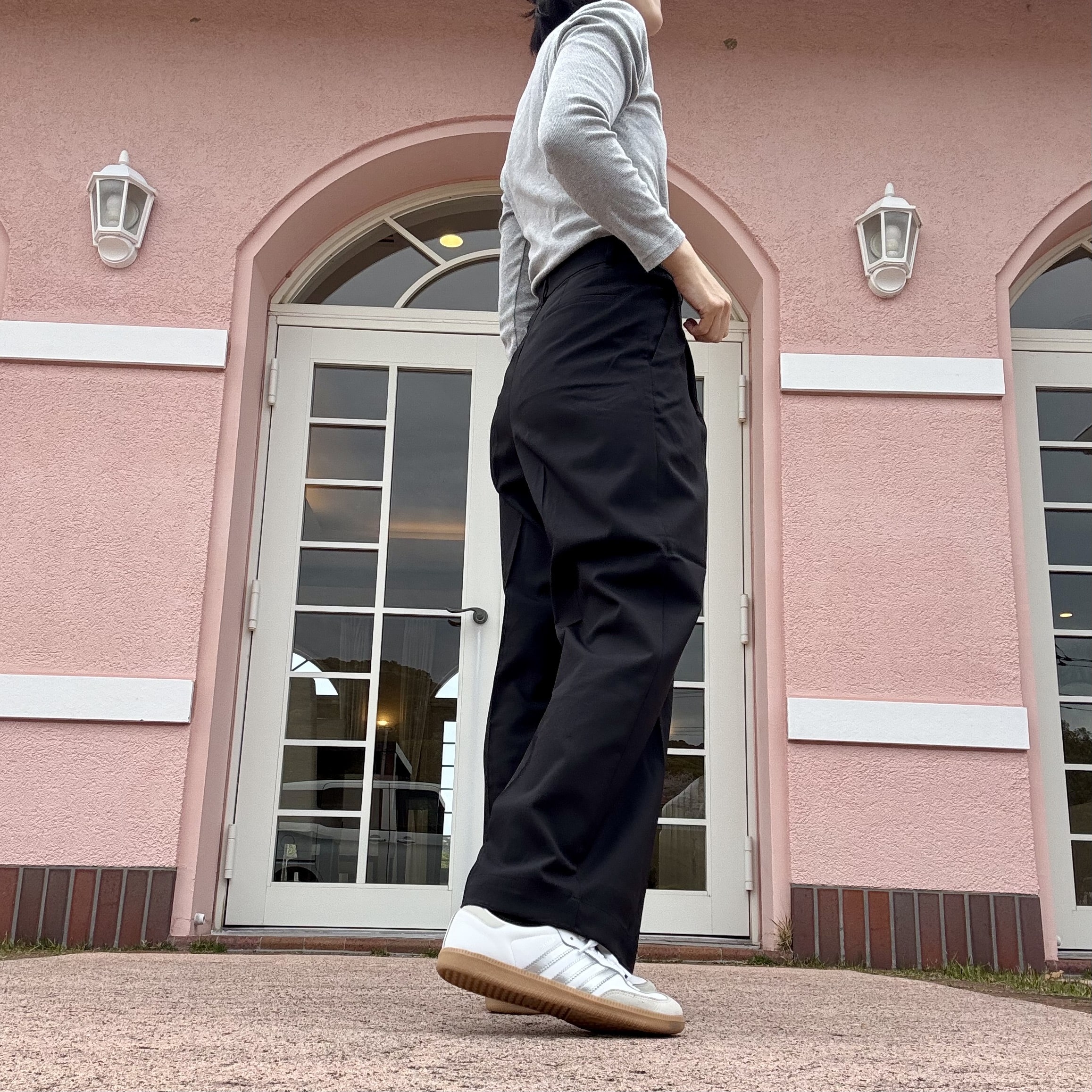 気に入っているポイントは、タックが入っており、適度に体型がカバーされること。また、センタープレス効果で足が綺麗に見えること。