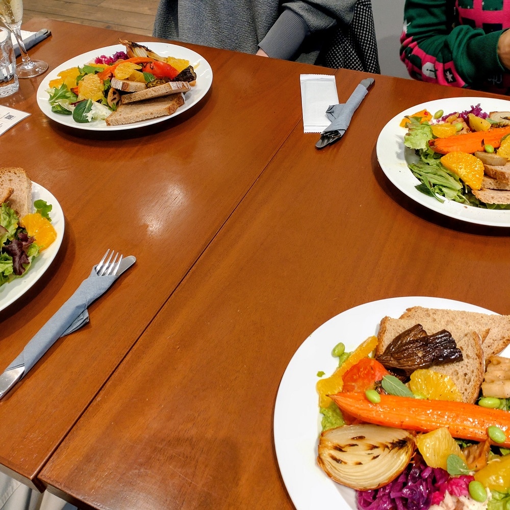 野菜がモリモリの美しいランチ、ドリンク付きで2,000円くらい。お酒も選べます。野菜メインなのに食べ応えアリ。お腹いっぱいだったのでスタッフさんが勧めてくれたキャロットケーキまではたどり着きませんでした。次回こそは。