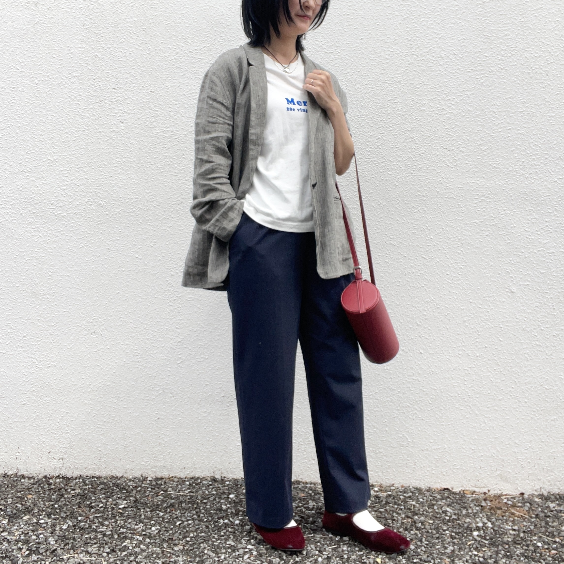 美容室へ行った時のコーデです。12closetのTシャツにリネンのジャケットを羽織りました。