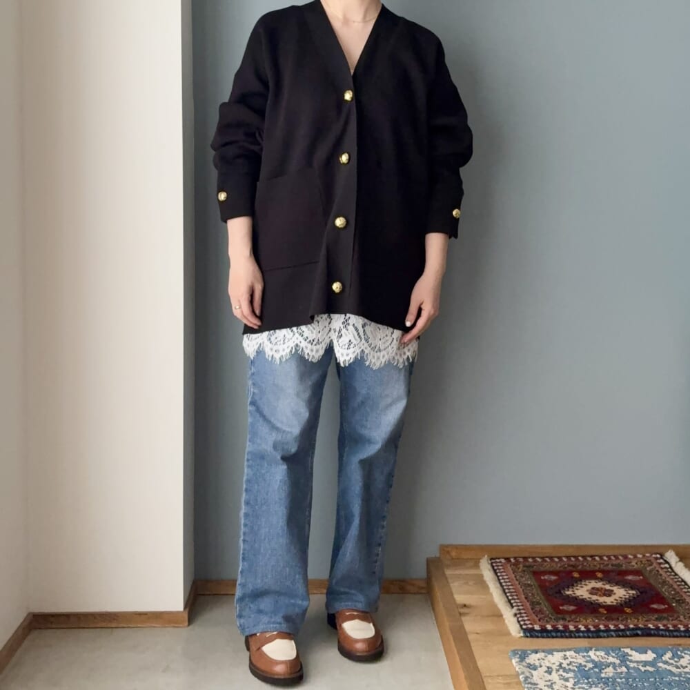 カーデ&デニムスタイルも格上げ