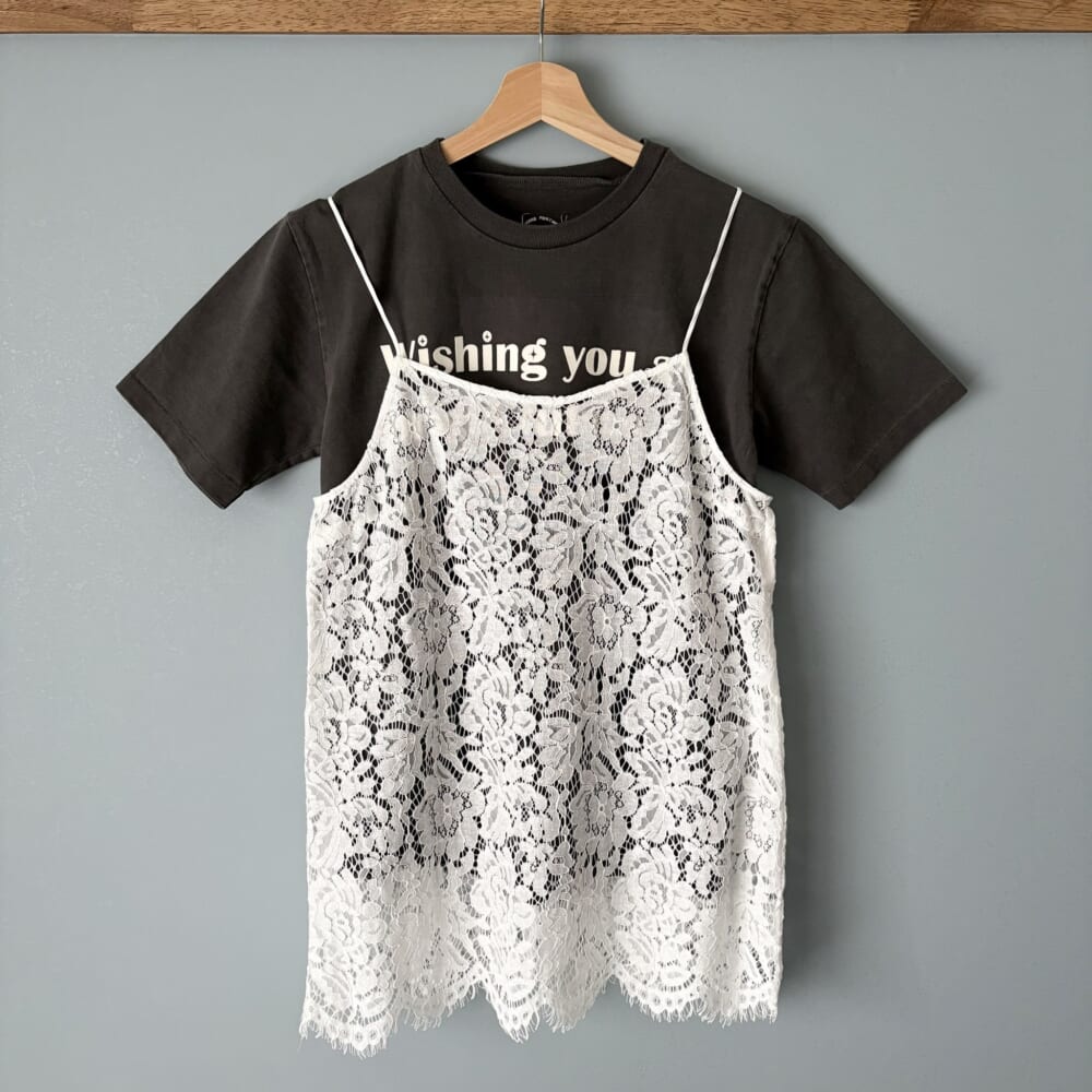 とくにキャミソールが気になっていて、インして裾からレースをのぞかせたり、シャツやボーダーなどトップスの上に重ねたり。