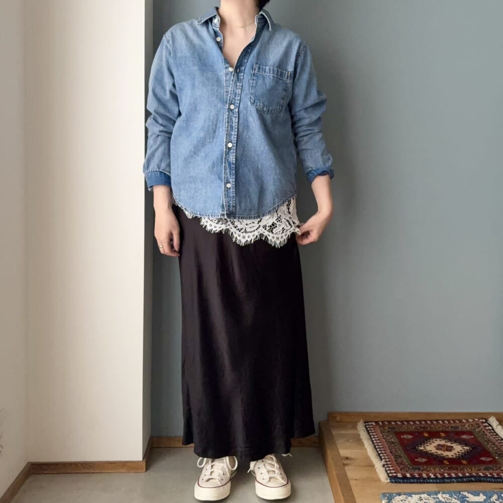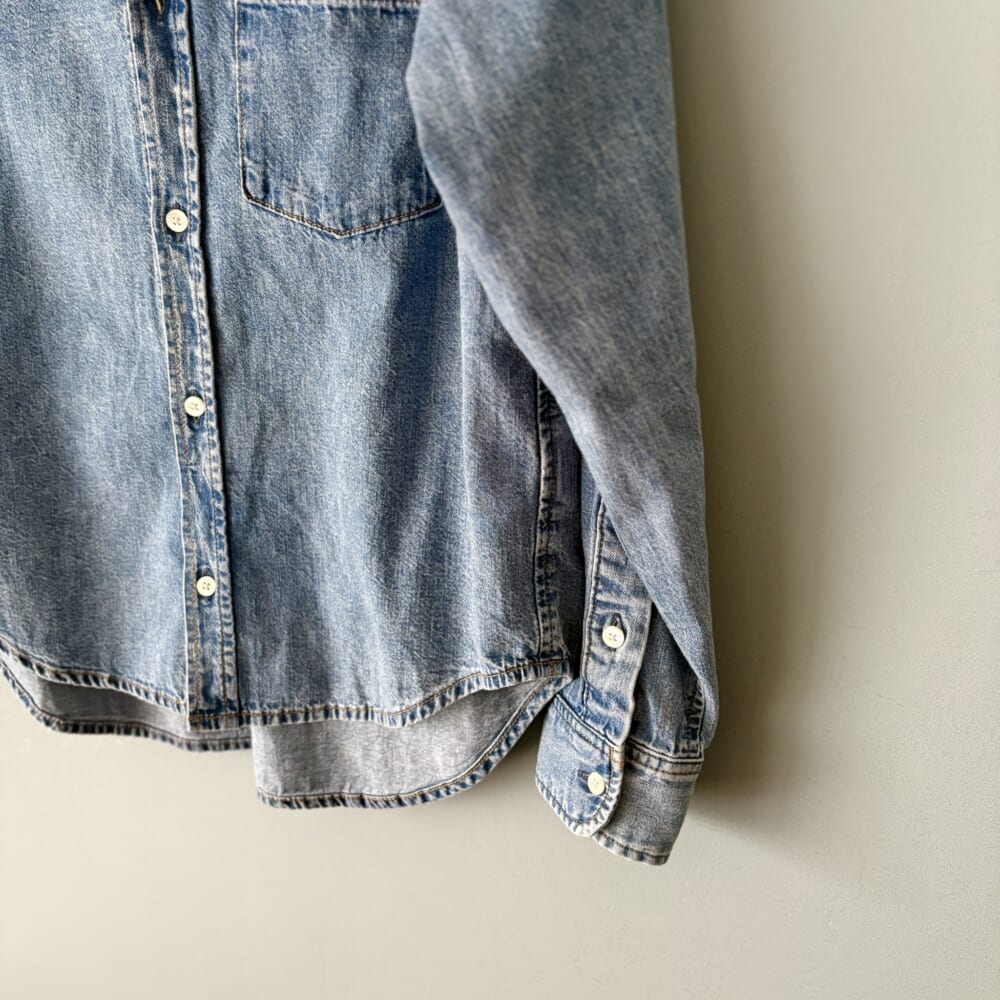 昔から大好きなデニムシャツですが、サイズ感や色味など、そのときどきのトレンドがあるので断捨離のペースが早く。。。