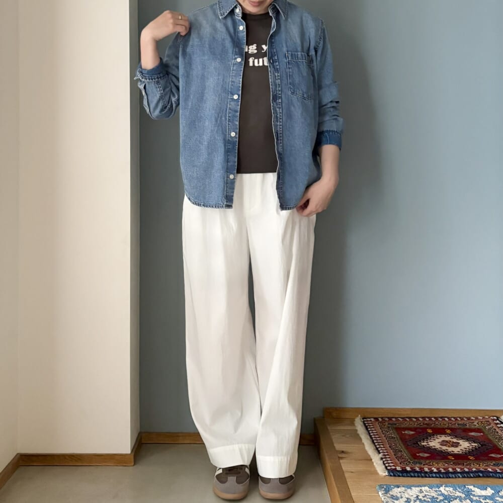 パステルカラーや、デザイン性の高いアイテムも気になりますが、今シーズンはデニムシャツを購入しました。
