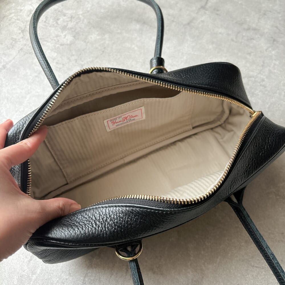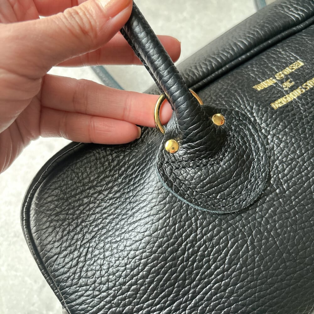 さすがヤング&オルセン、本革のしっかりとした造り。長めのハンドルは肩に掛けやすい。