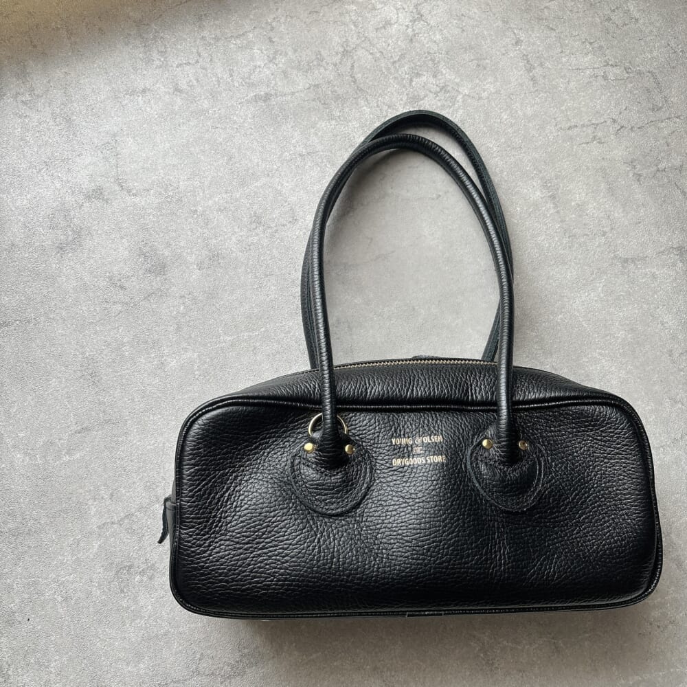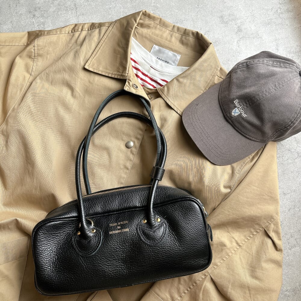 ヤング&オルセンのレザー横長黒バッグを使ったコーディネート