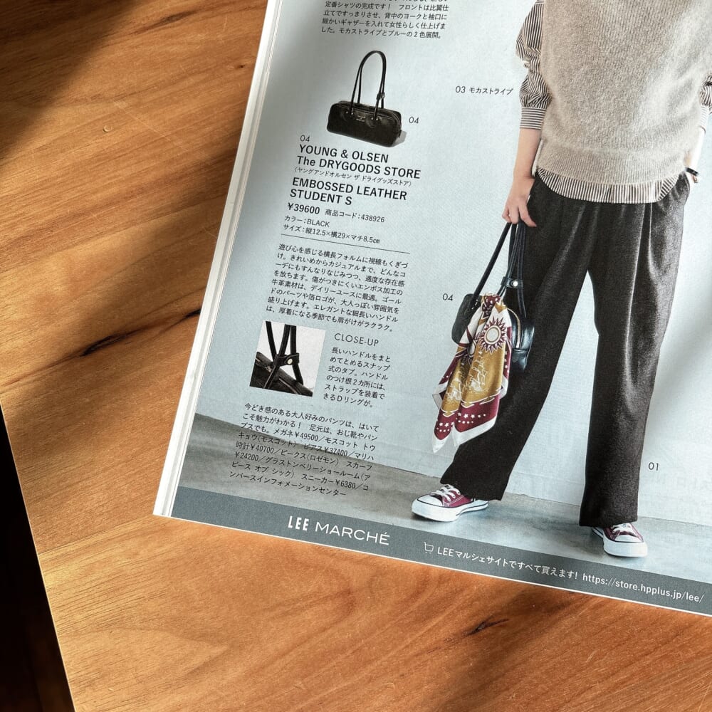 シンプルだけど存在感があるバッグが40代のコーデに活躍中!【LEEマルシェ】YOUNG &OLSEN|EMBOSSED LEATHER STUDENT S