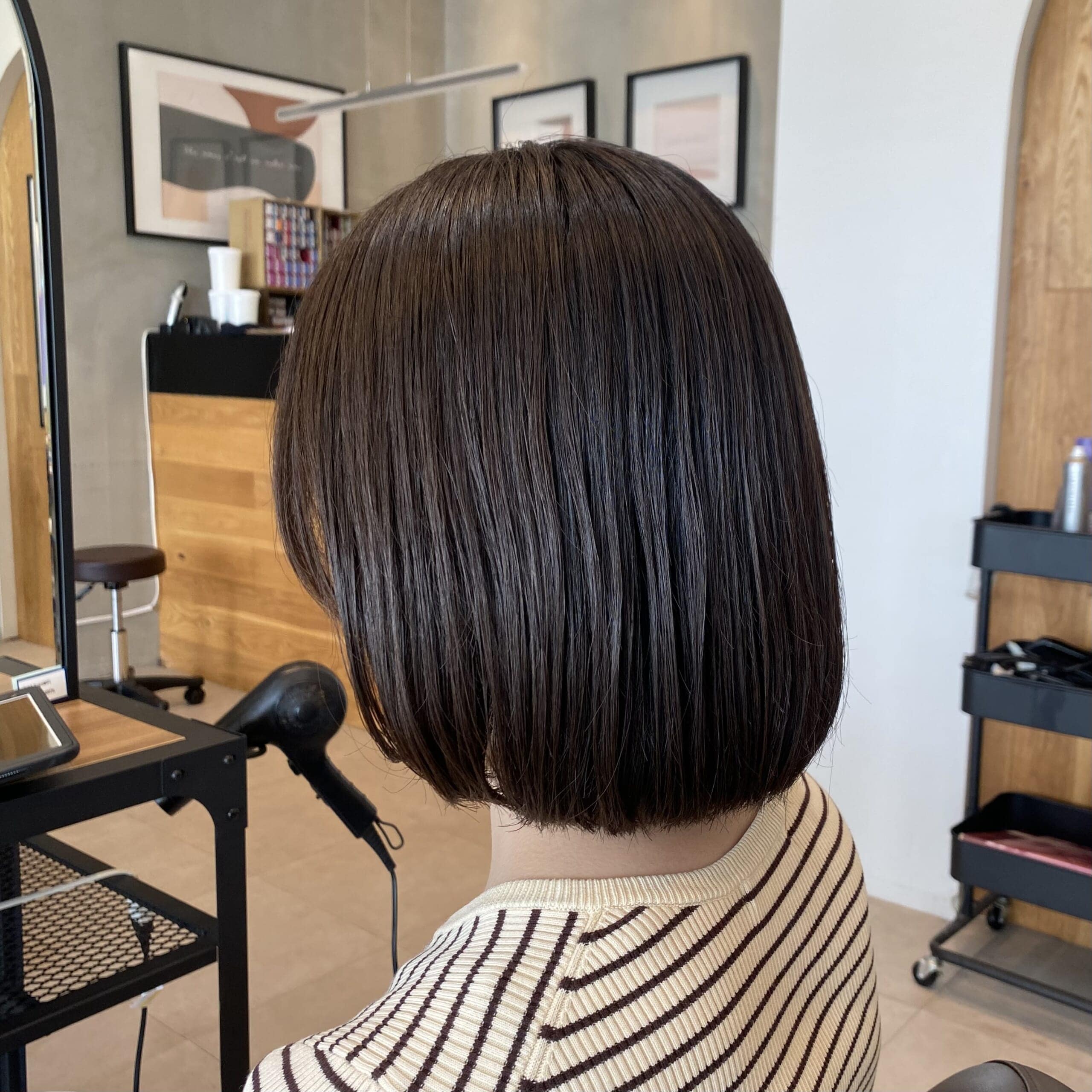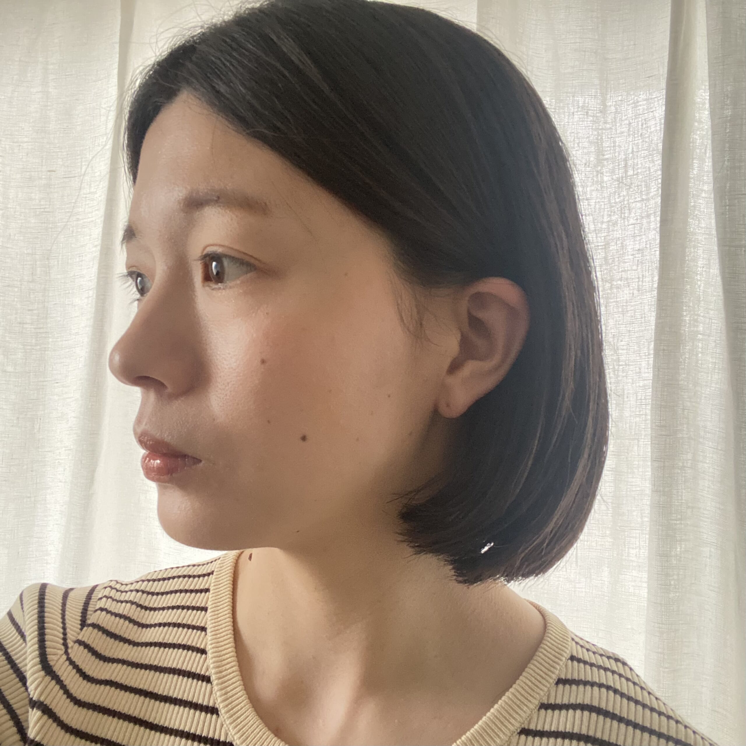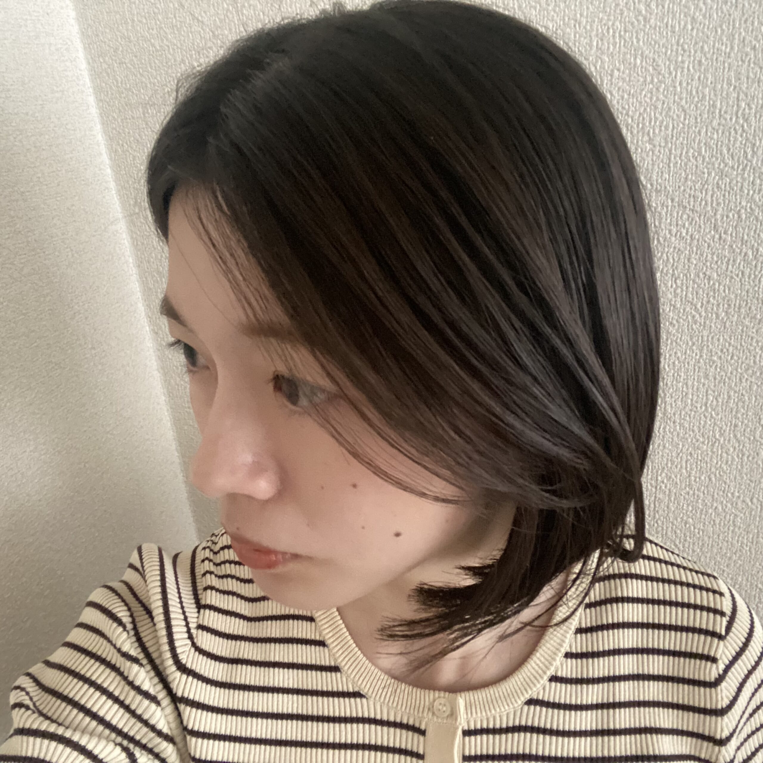 前髪の変化も欲しくて、流せる長さにして、仕事上、ギリギリ結べる長さを残しました。