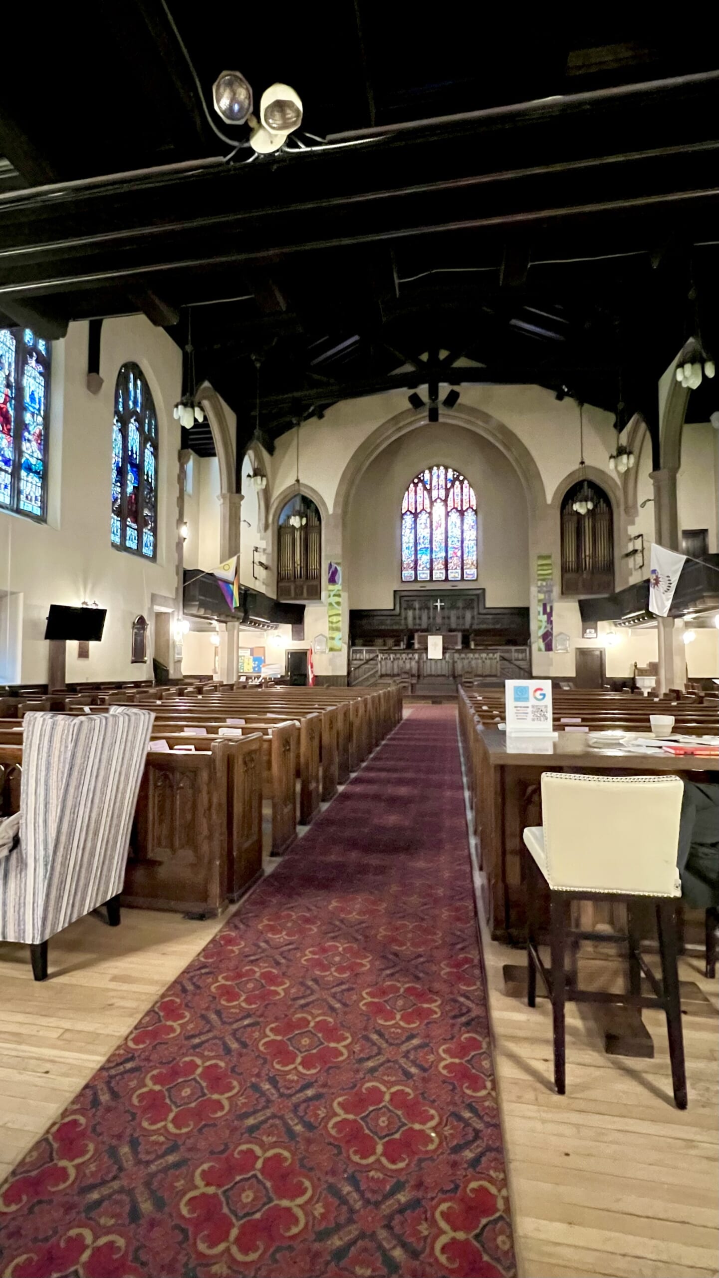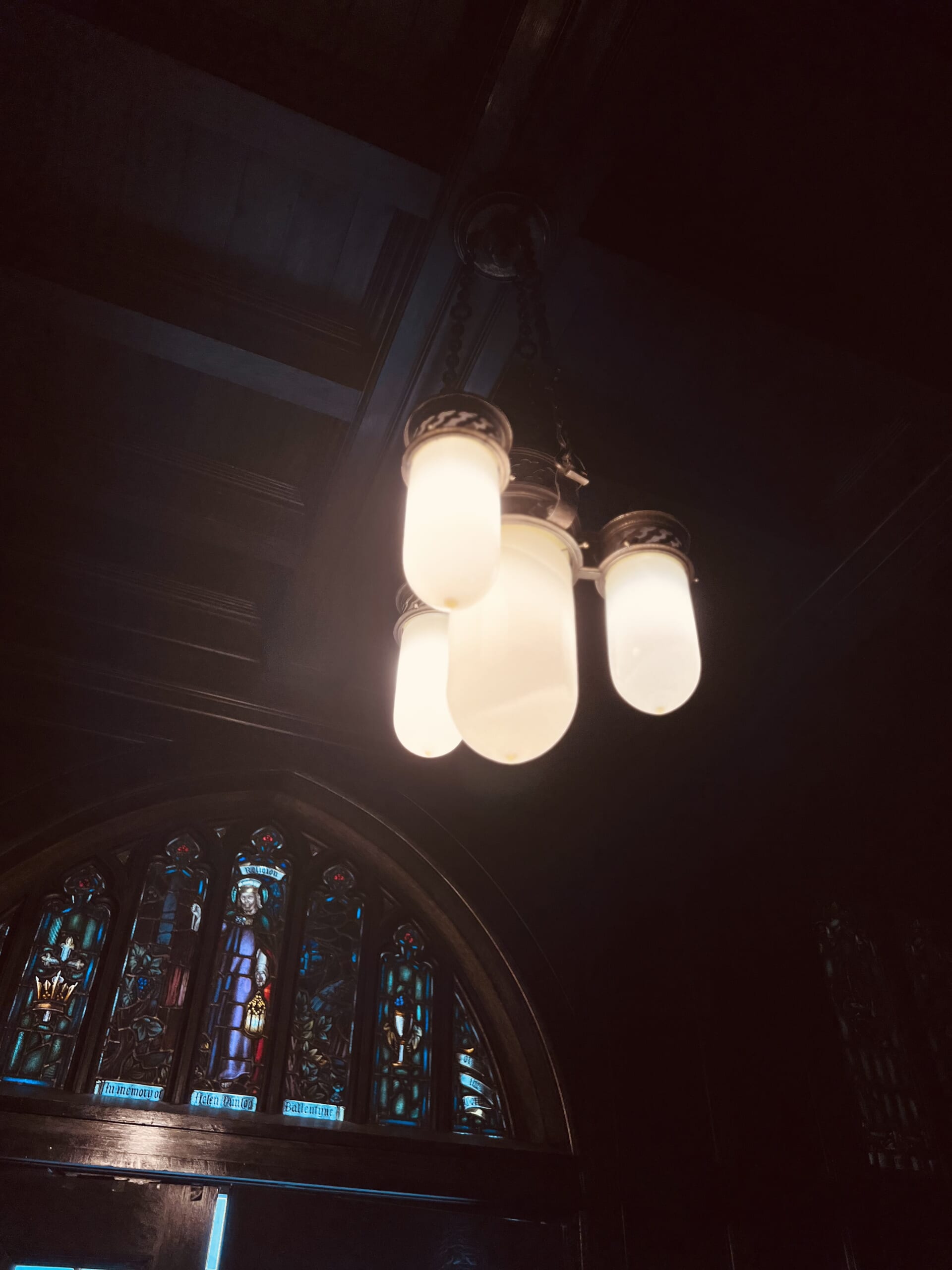 ステンドグラスからの光と、やわらかな照明、そして控えめな空気感。
