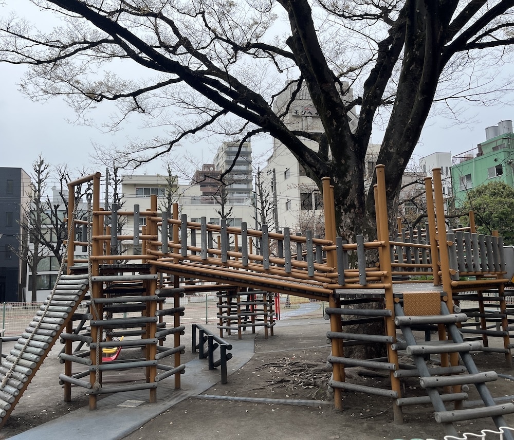 川沿いの隅田公園は初めて来たのですが、遊具広場のアスレチックに子供達は大喜び。夜桜も、公園でのちょっと夜遊びも堪能でき大満足でした。