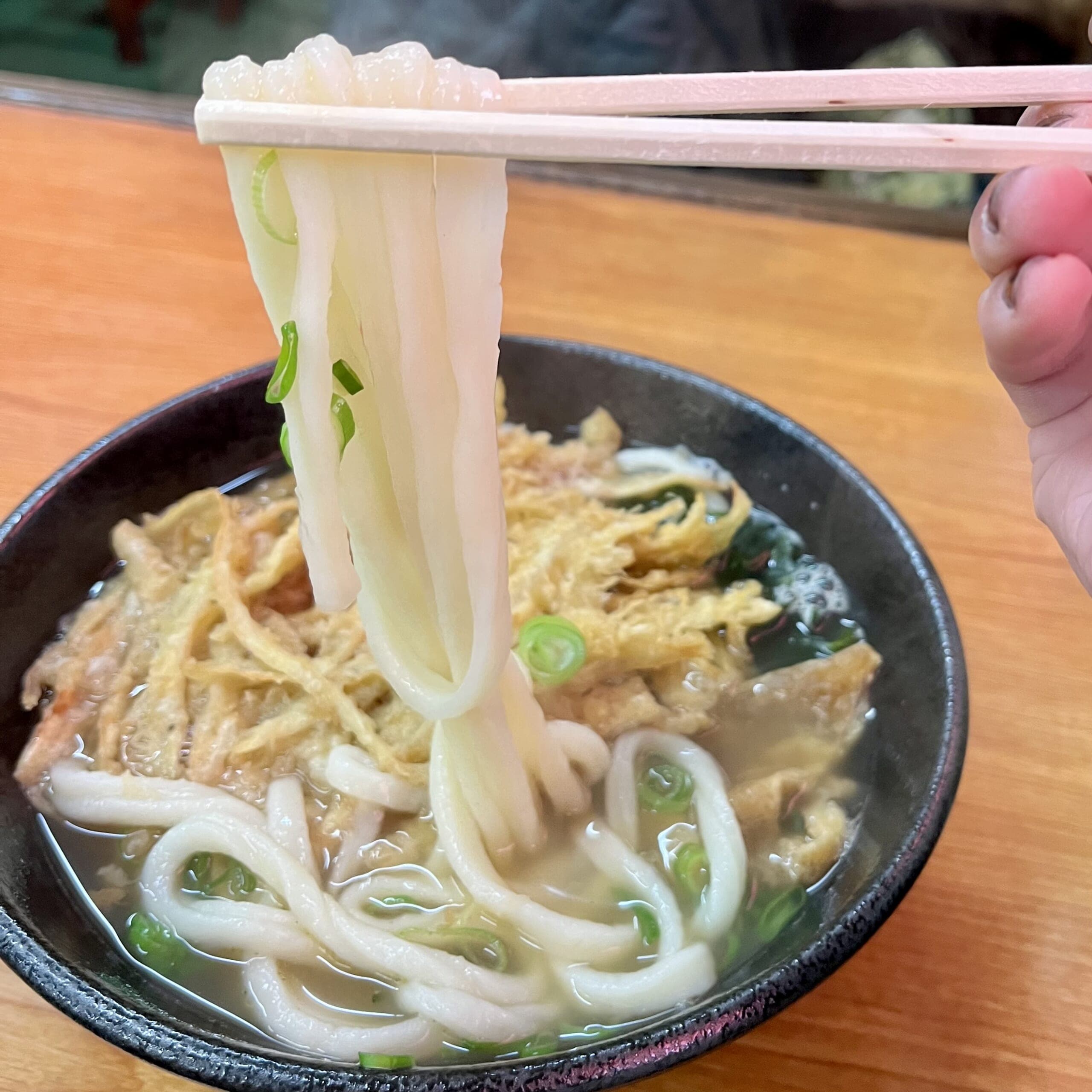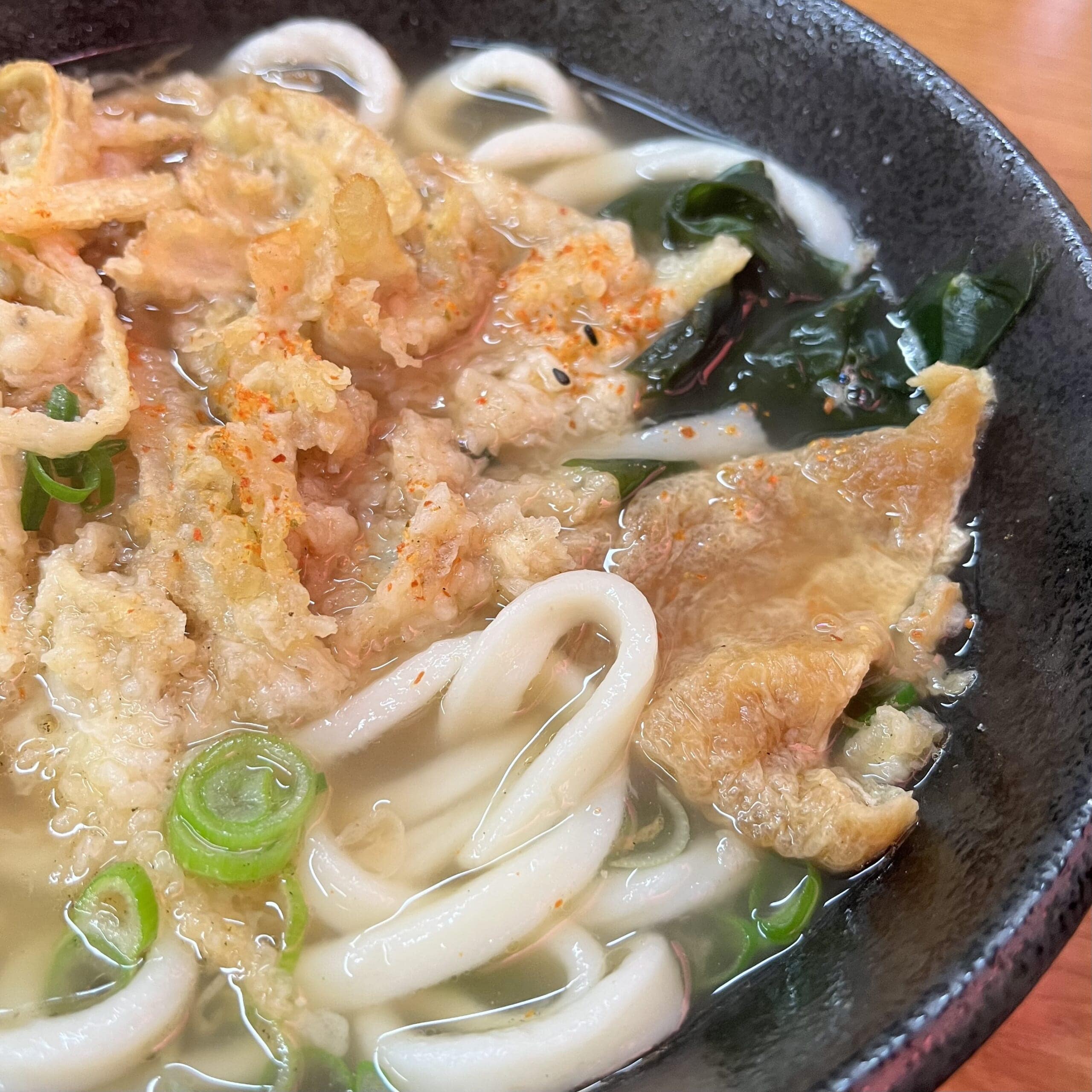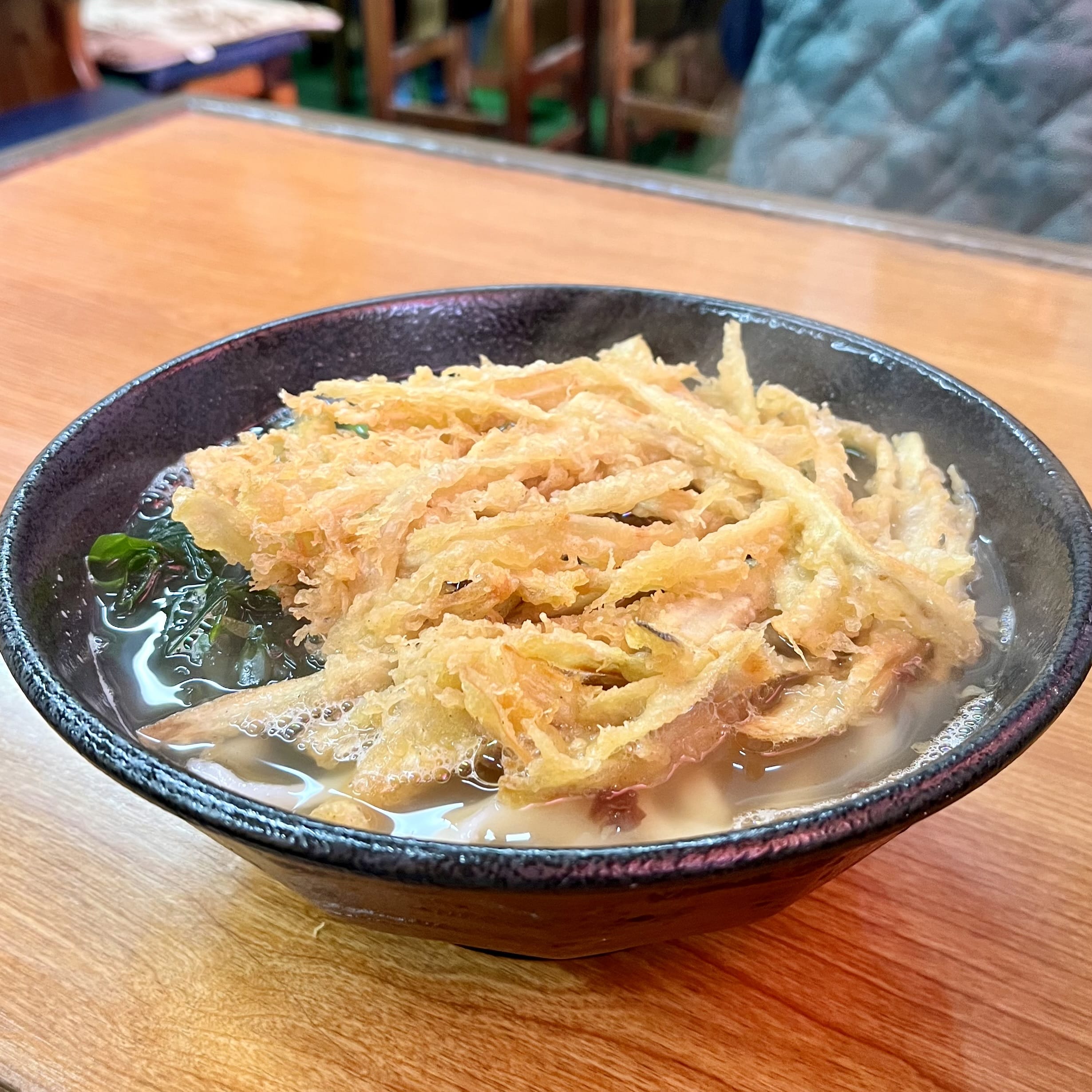 私はごぼう天うどんのときは、最初に半分サクサク揚げたて食感を楽しみ、衣にお出汁が染みた頃にもう半分食べています。二度おいしいのでおすすめ。