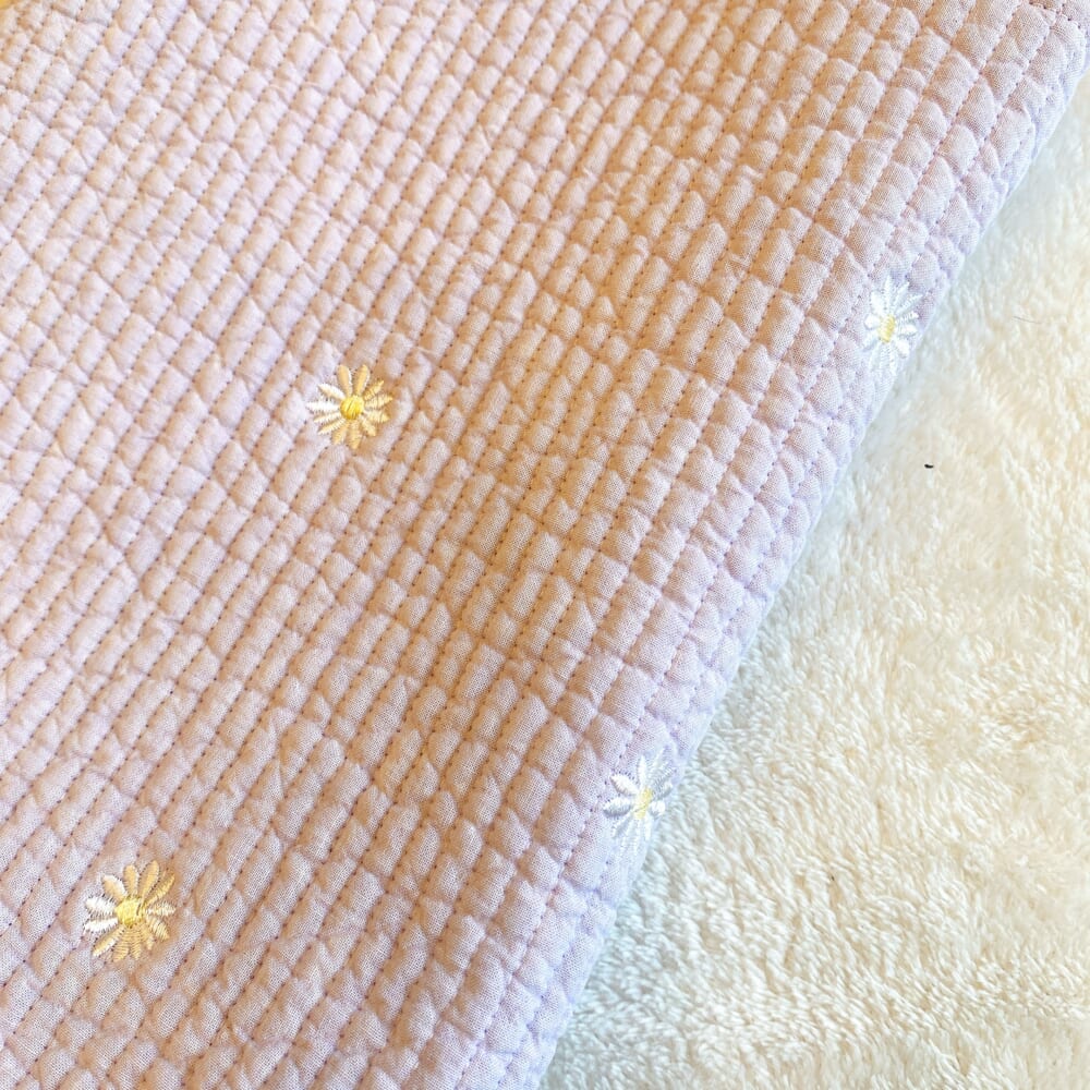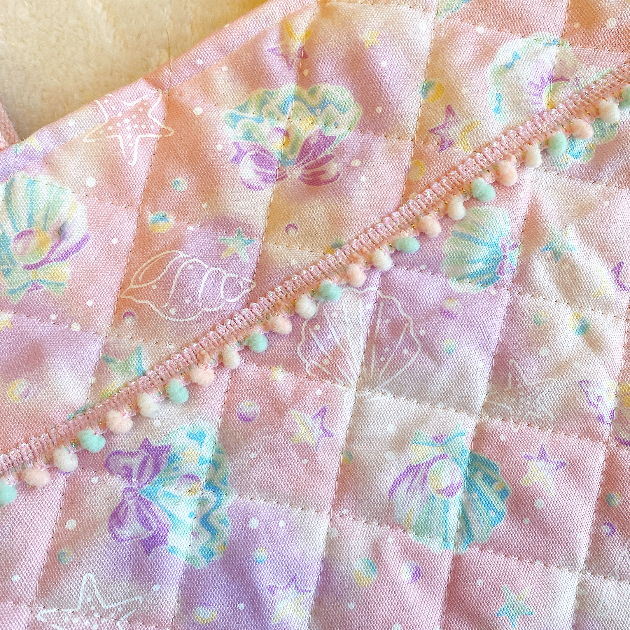 年中さんくらいのときに「なんて幼稚園児が喜びそうな色と柄♡」と思って買い、寝かせてしまっていたキルティング生地。