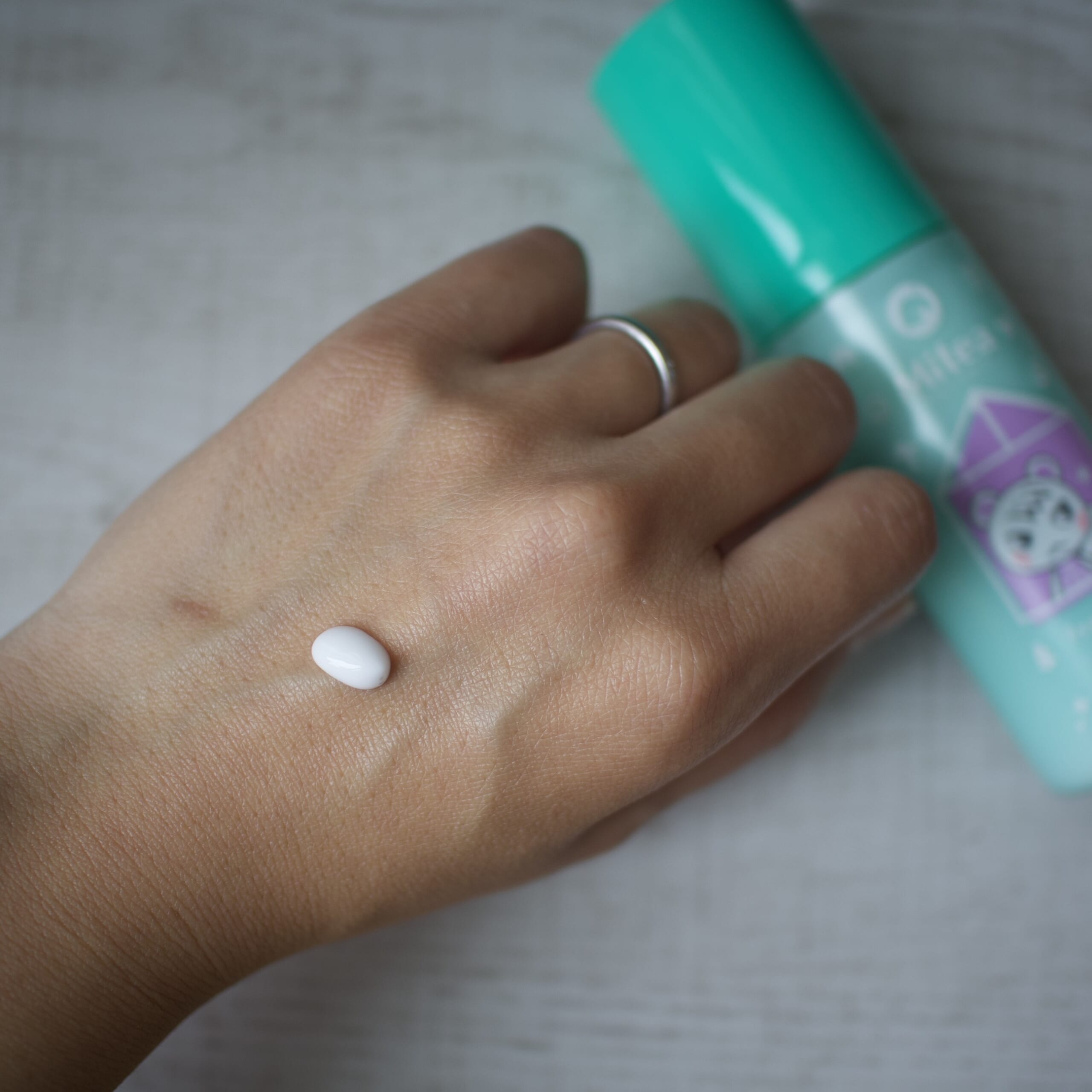 一般的な乳液よりもややこっくりとしたテクスチャー。でも、肌にのせるとスッと広がるので、半〜1プッシュで十分◎