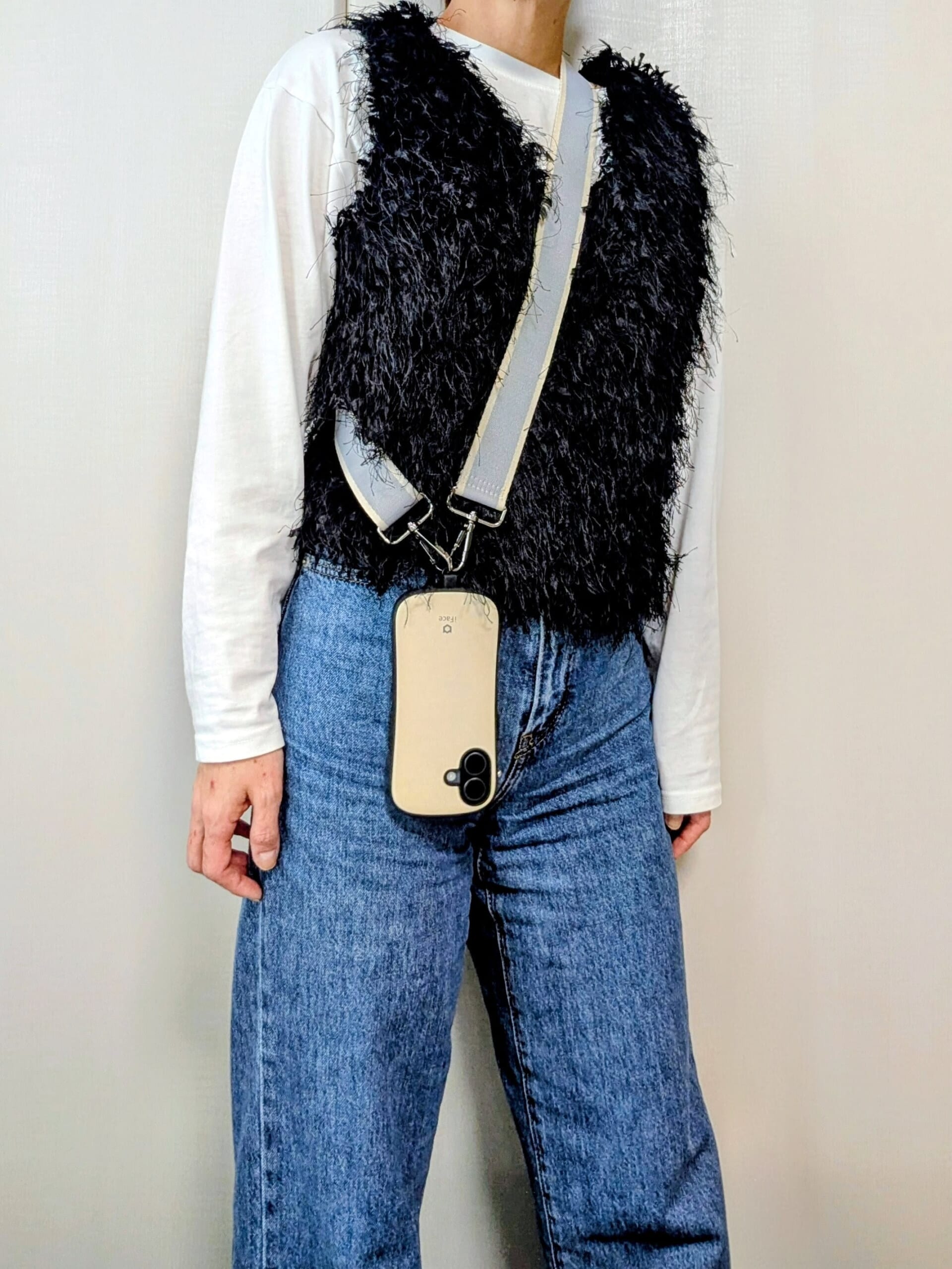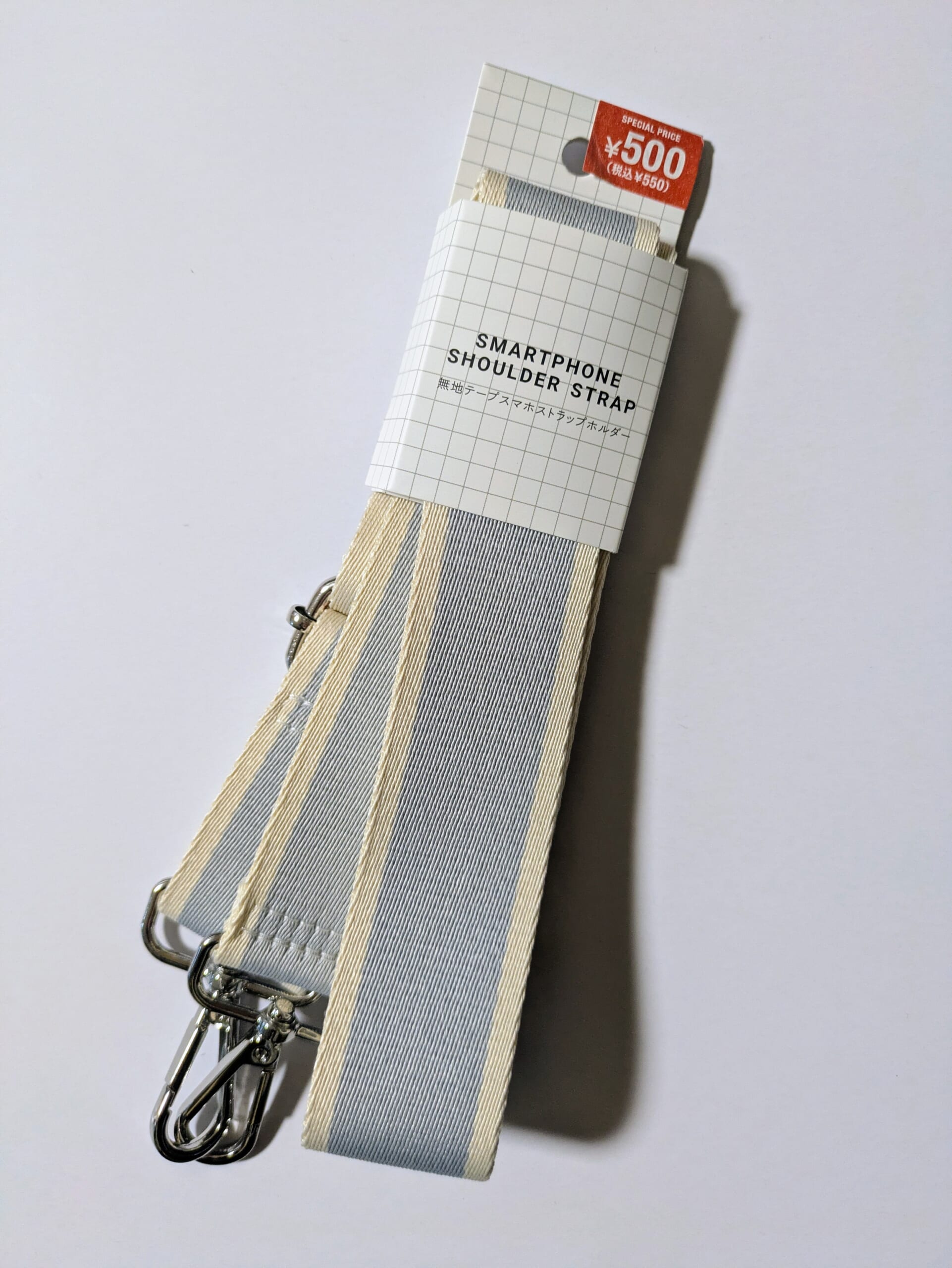 こちらは3COINSで購入した“無地テープスマホストラップホルダー”です