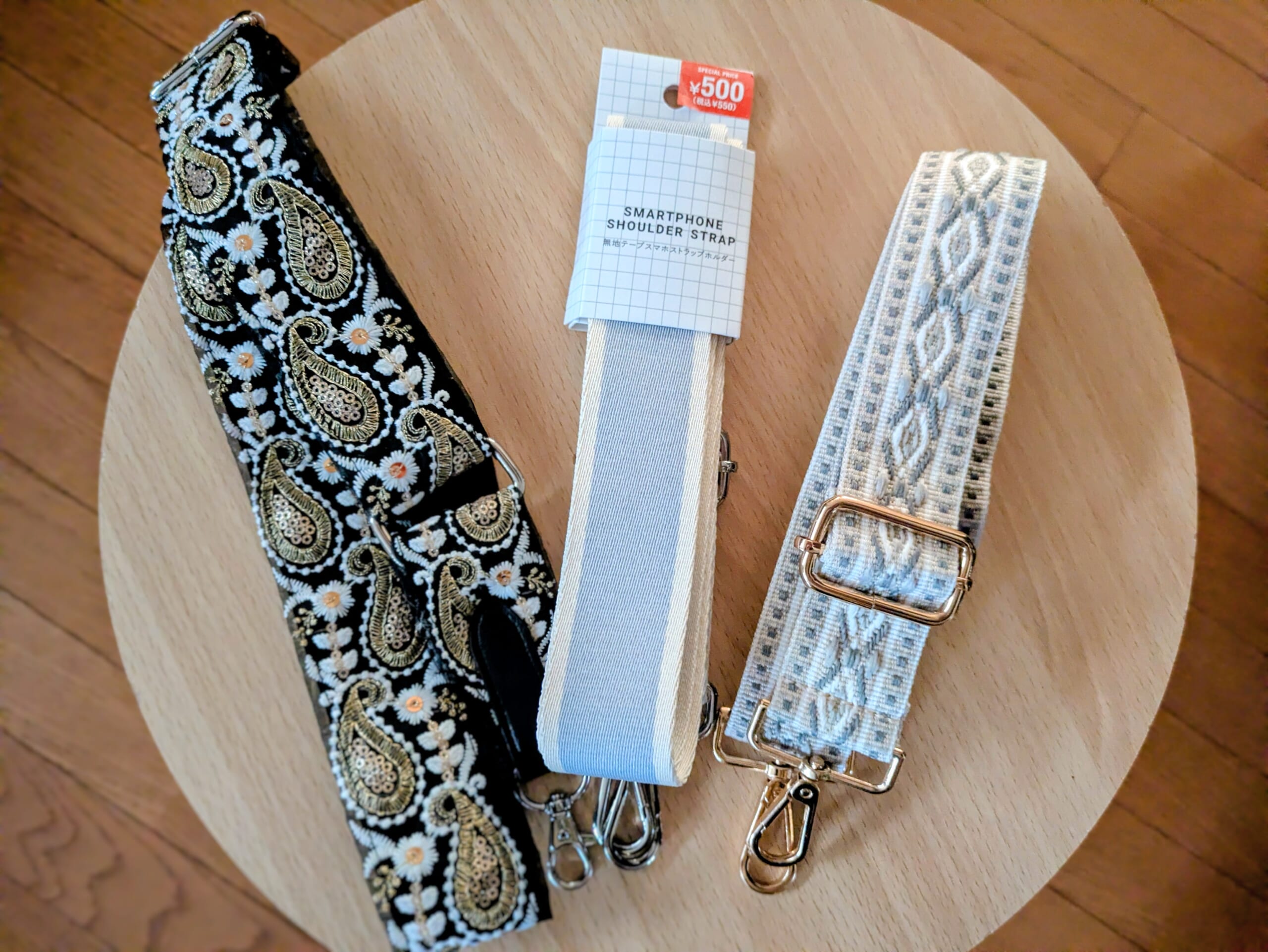 左からGLOBALWORK、3COINS、ネットで購入したストラップです