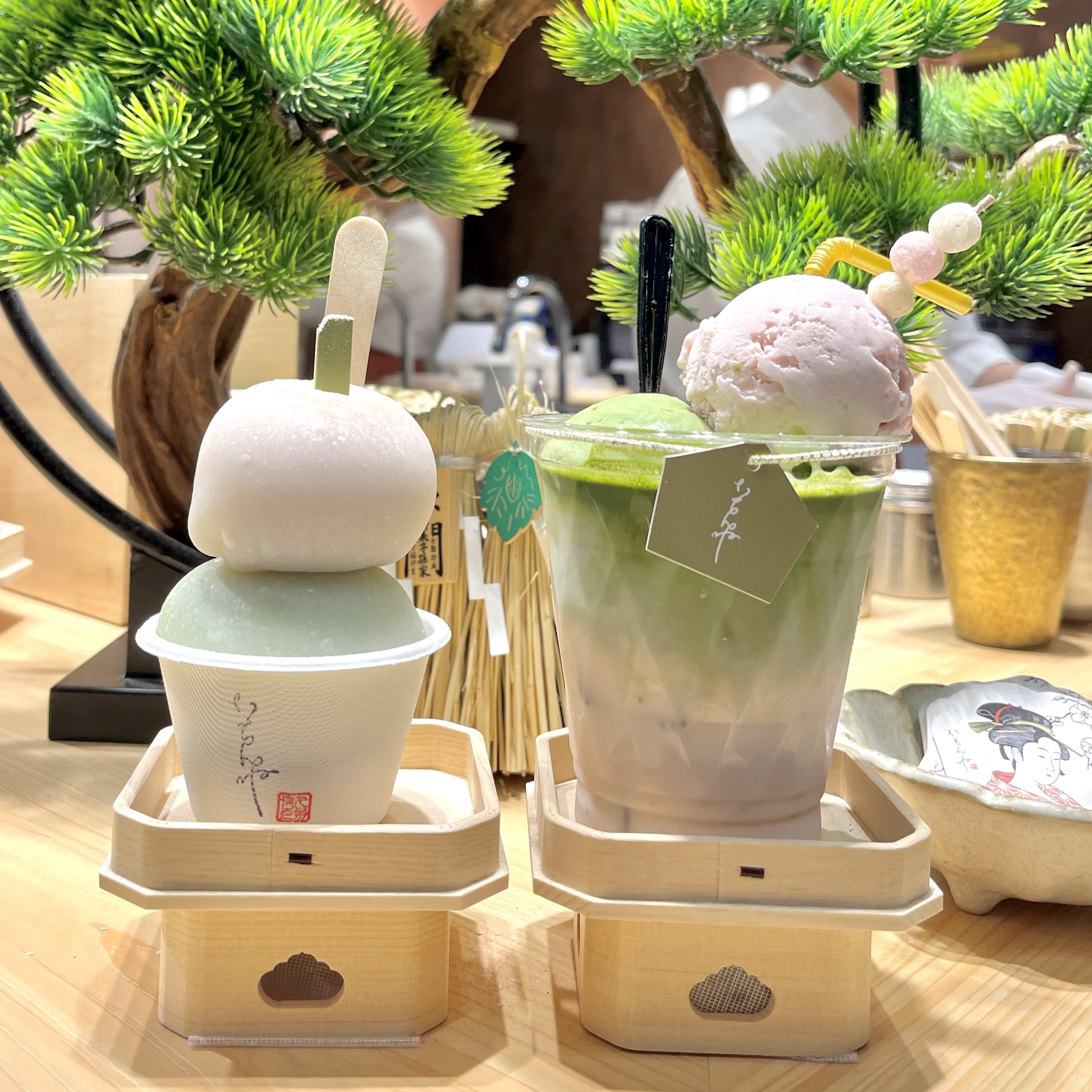 抹茶ラテに伊勢抹茶とさくら餅のジェラートが乗っていて、ボリューム満点。ドリンクというよりガッツリとしたスイーツです。