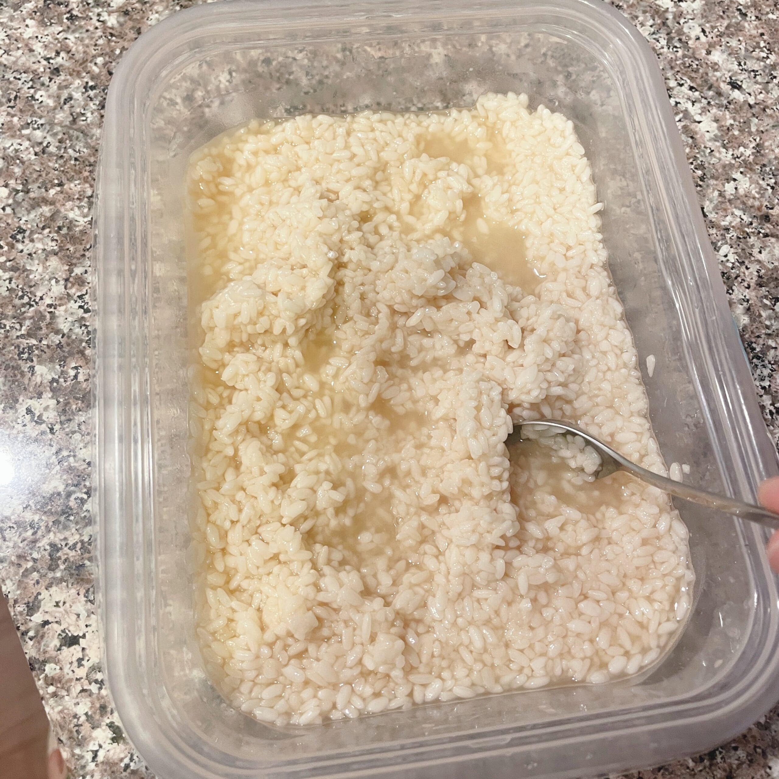 そこに米麹と同量のお水(+α様子をみて)入れて混ぜます。