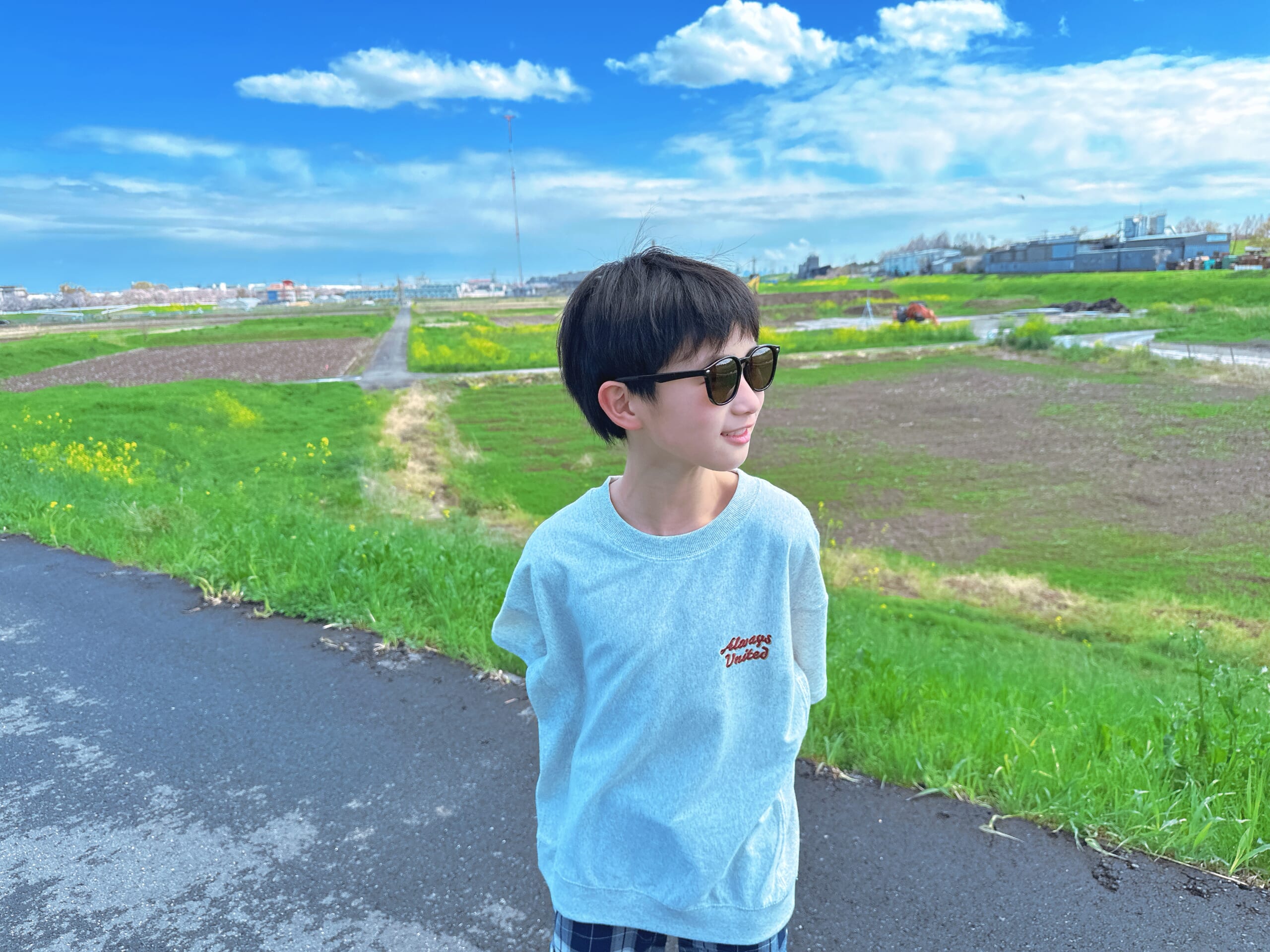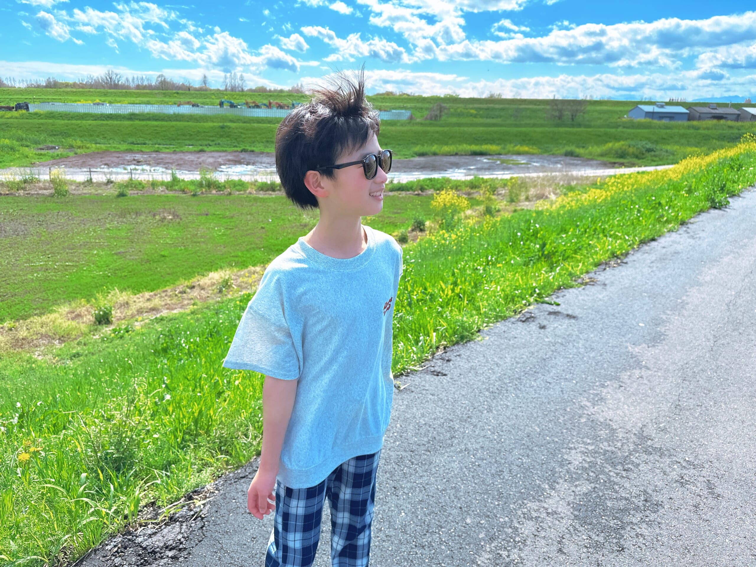 この日、40分ほど土手にいましたが、息子は走り回りながらずーっとサングラスをかけていました。よっぽど気に入った様子。笑