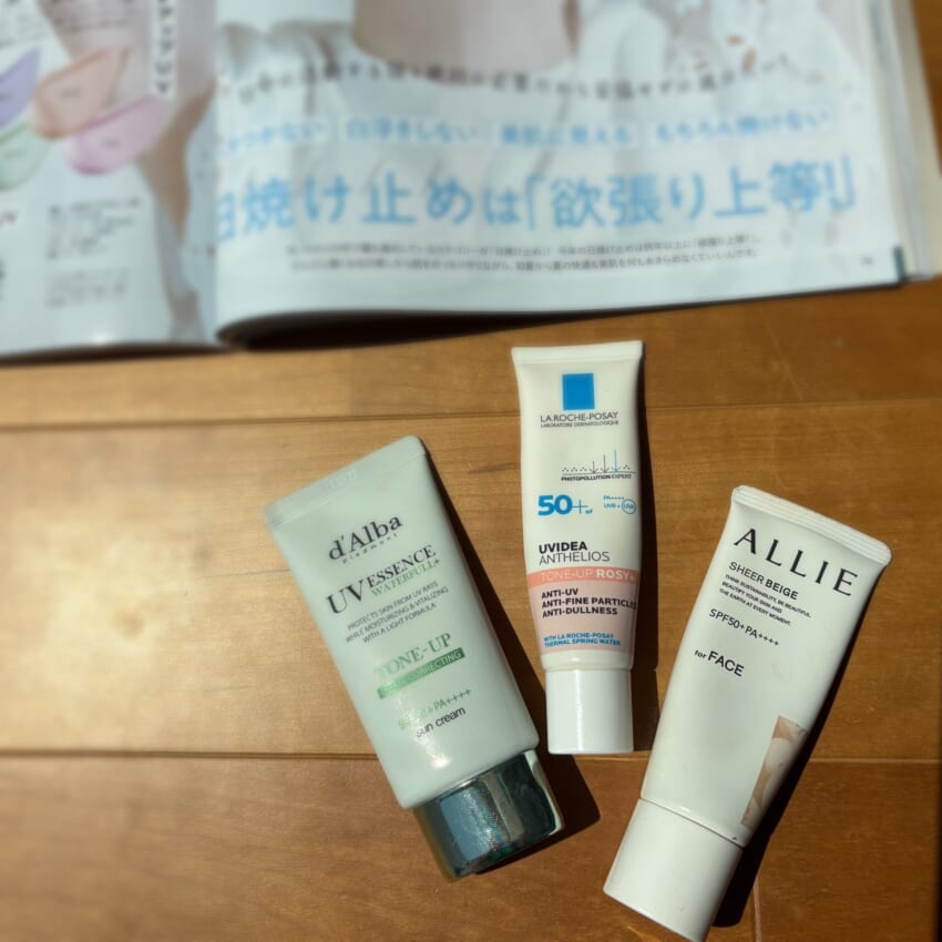 冬~最近にかけて、韓国コスメのダルバのトーンアップサンクリーム(グリーン)、ラ ロッシェ ポゼ(ROSY+)、長時間太陽の光を浴びる時はアリィーを私は使用していました。