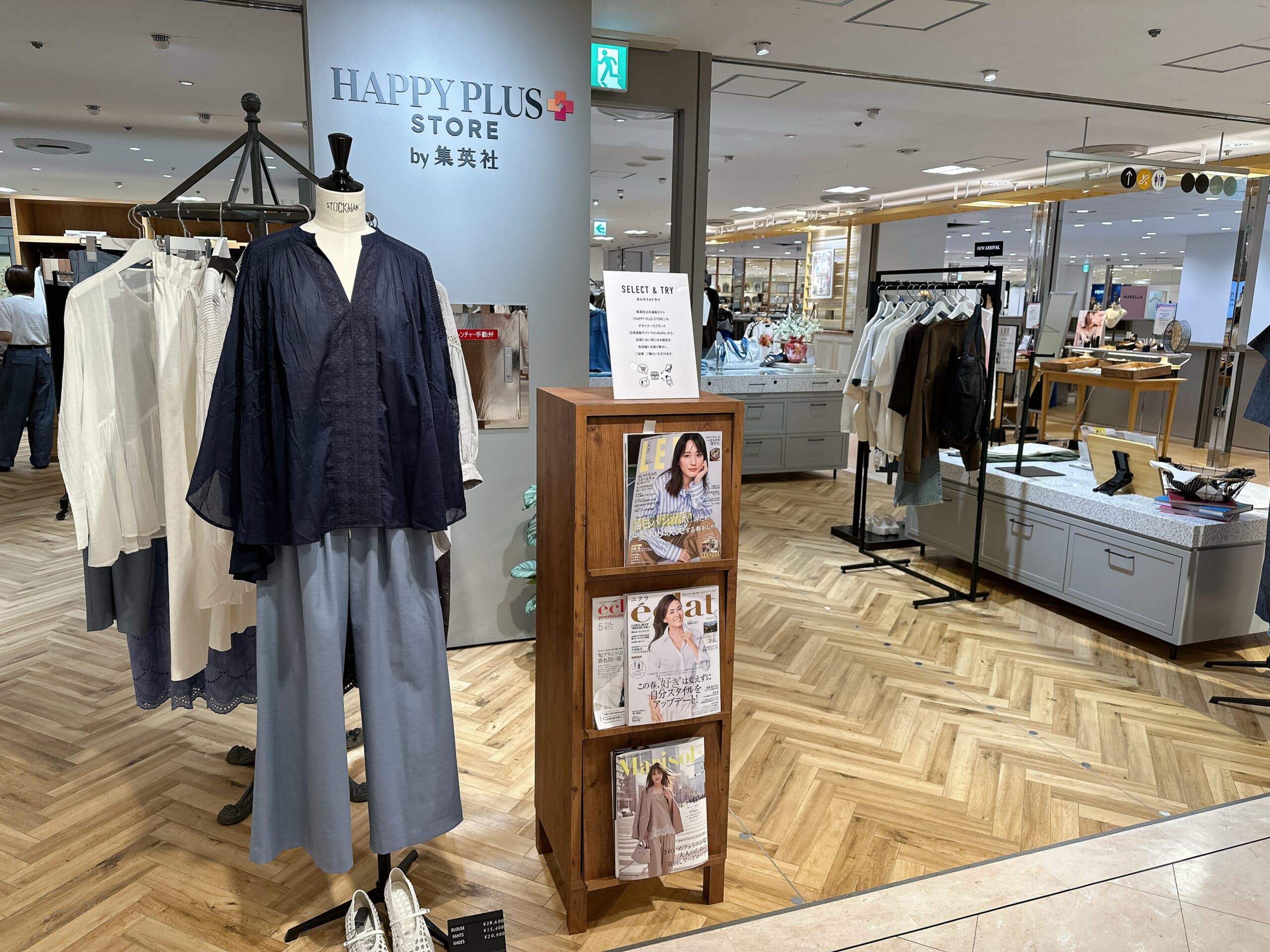 店舗には、各誌のオリジナルブランドアイテムやセレクションしたアイテムが並んでいるので、愛読書=自分の好きなテイストはもちろん、例えば、LEEよりちょっとお姉さん誌セレクトのアイテムも似合うかも!という発見や出会いもある♡と感じました。