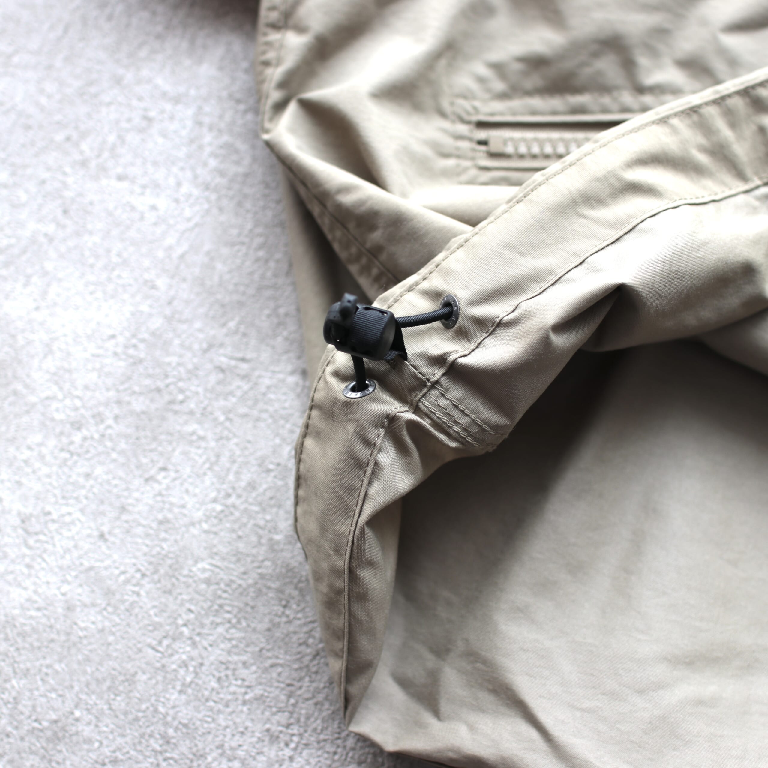 裾はドローコード付きでシルエット調整が可能。風の侵入も防げます。