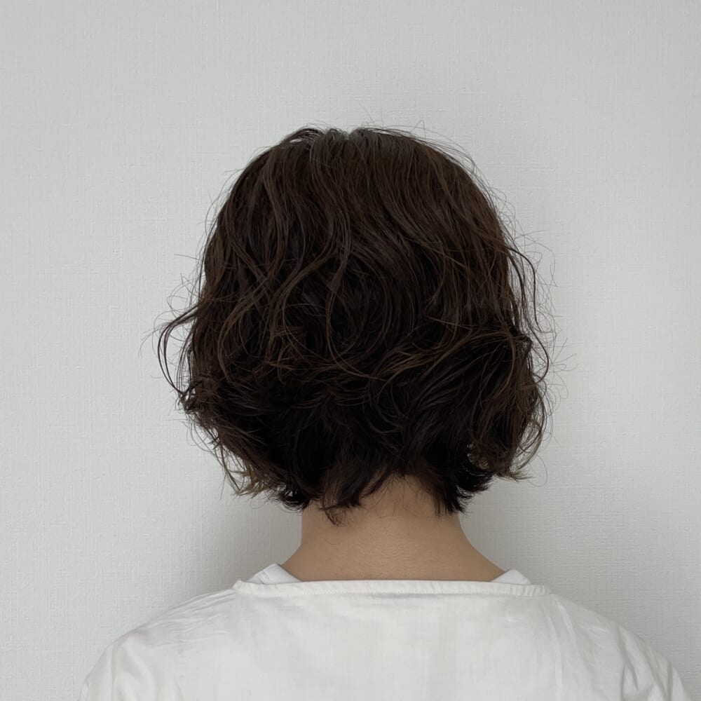 前髪なしショートボブ。春らしく軽やかにパーマを