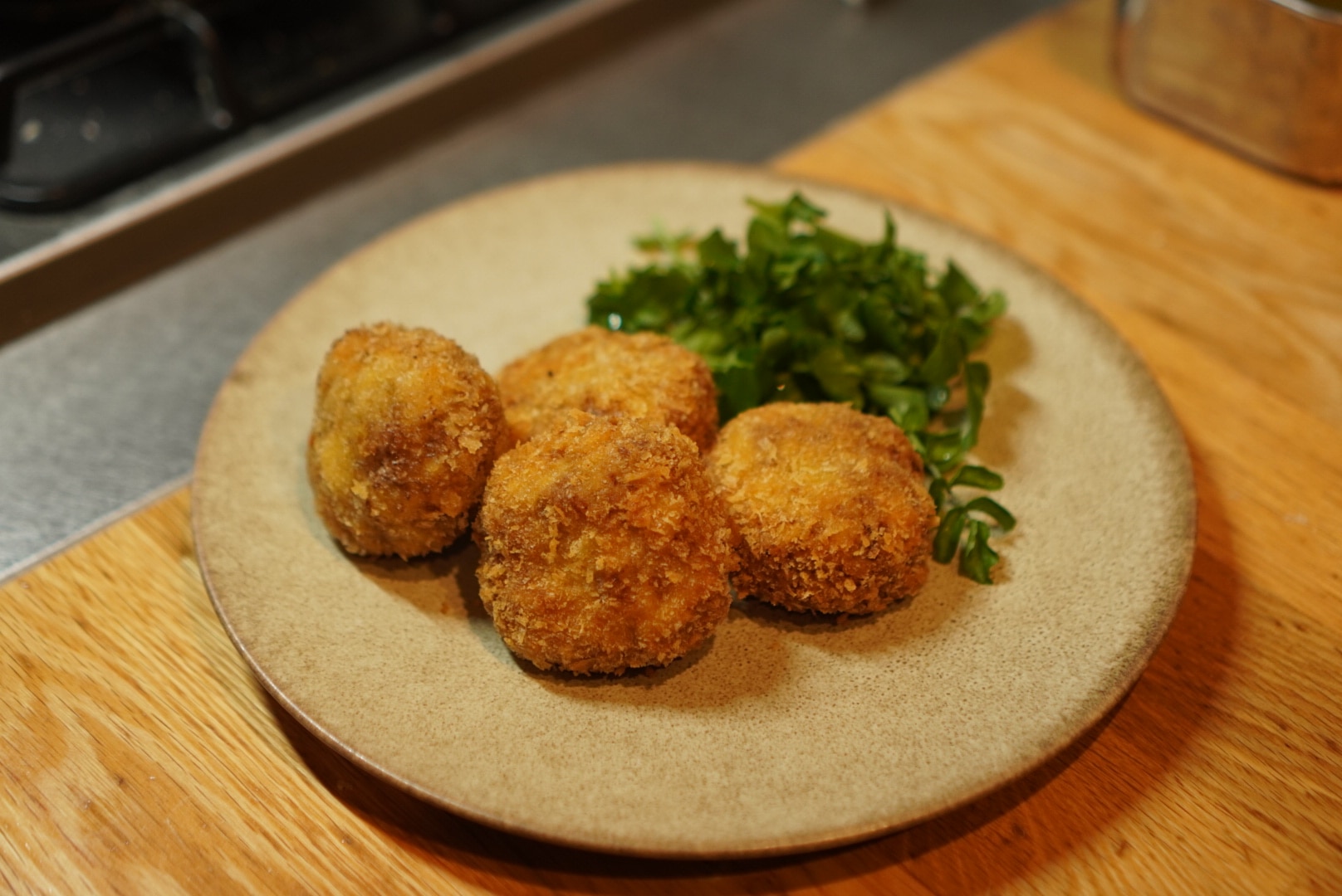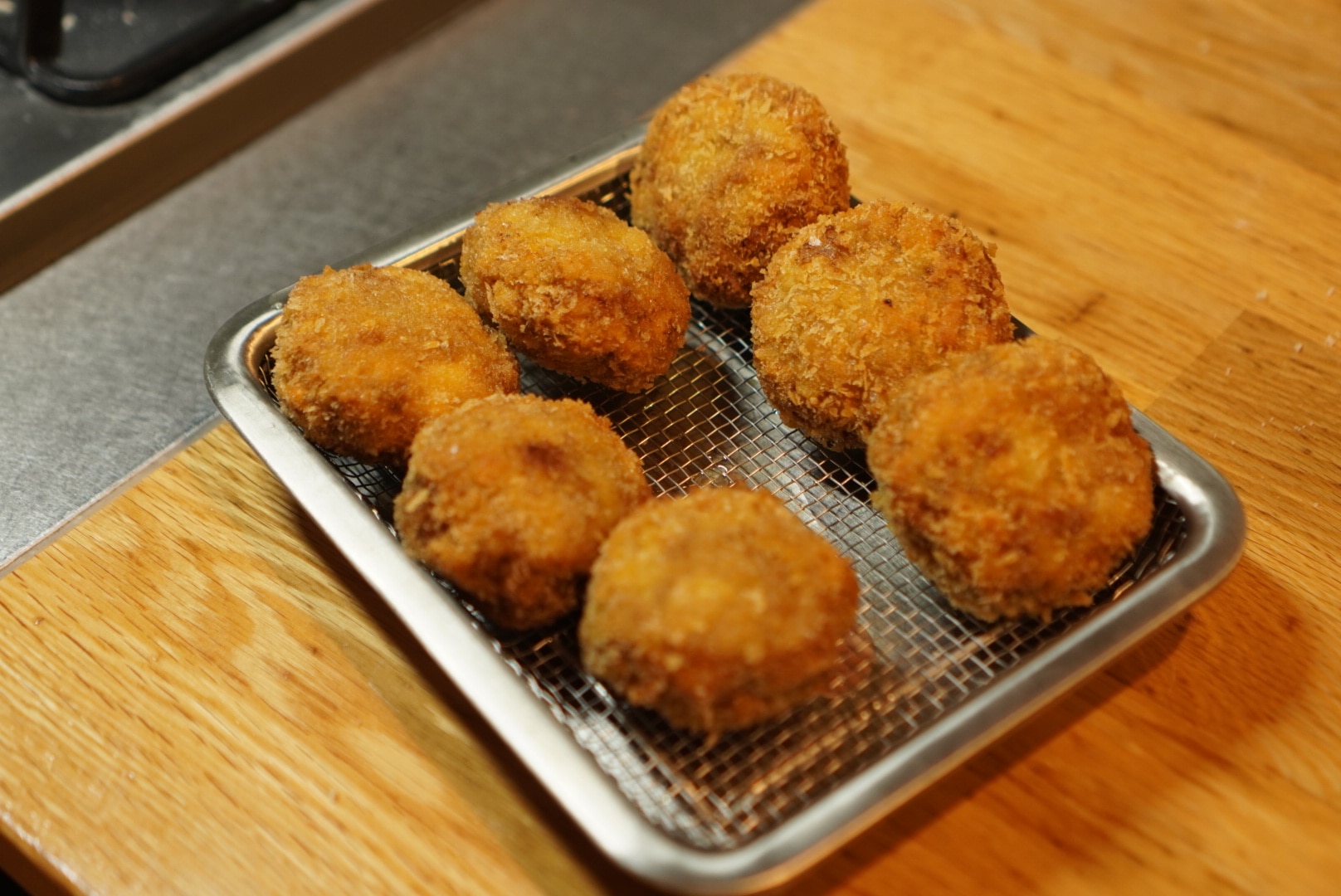お肉を捏ねて、野菜を加えて形を整えて。油でじっくり揚げたら出来上がりです。