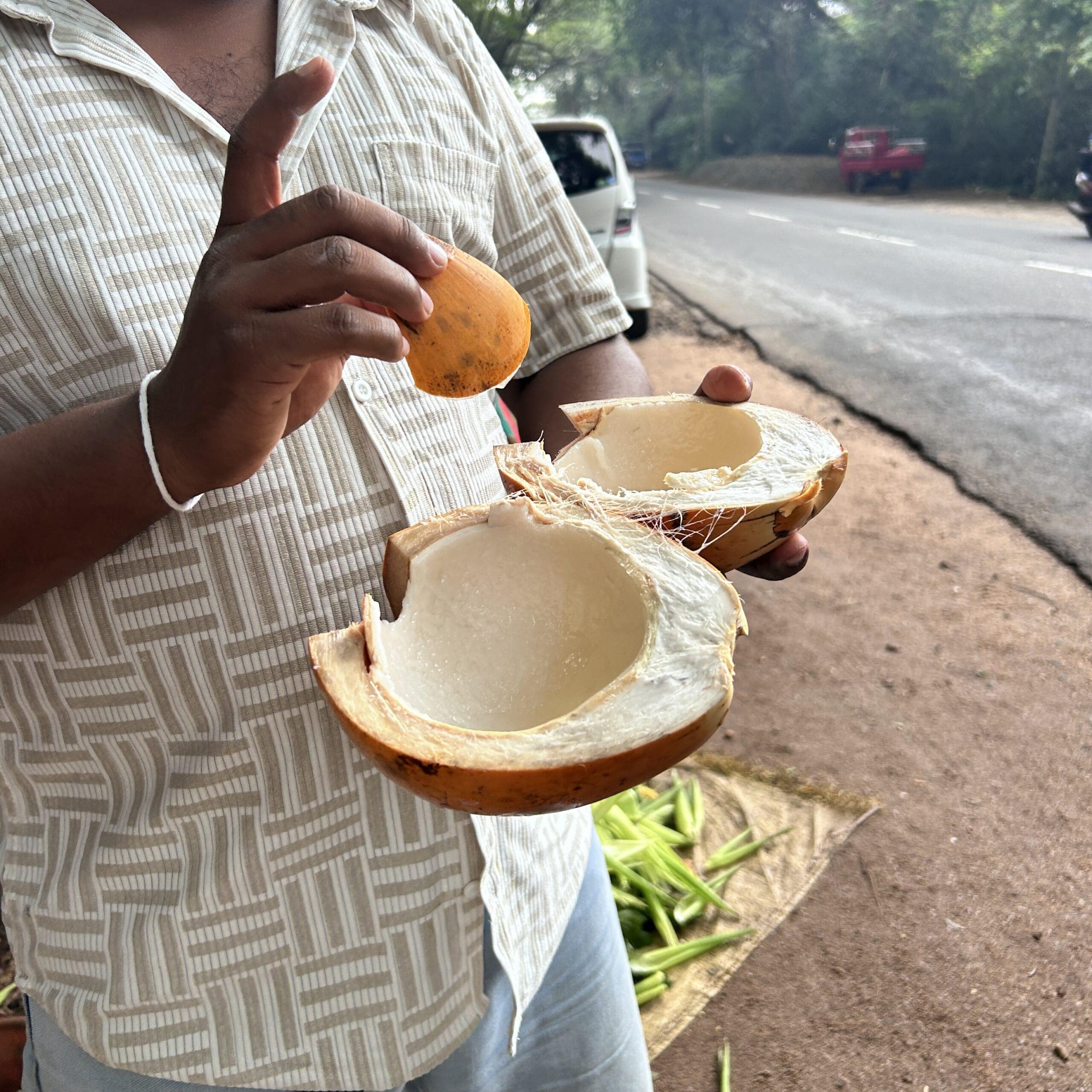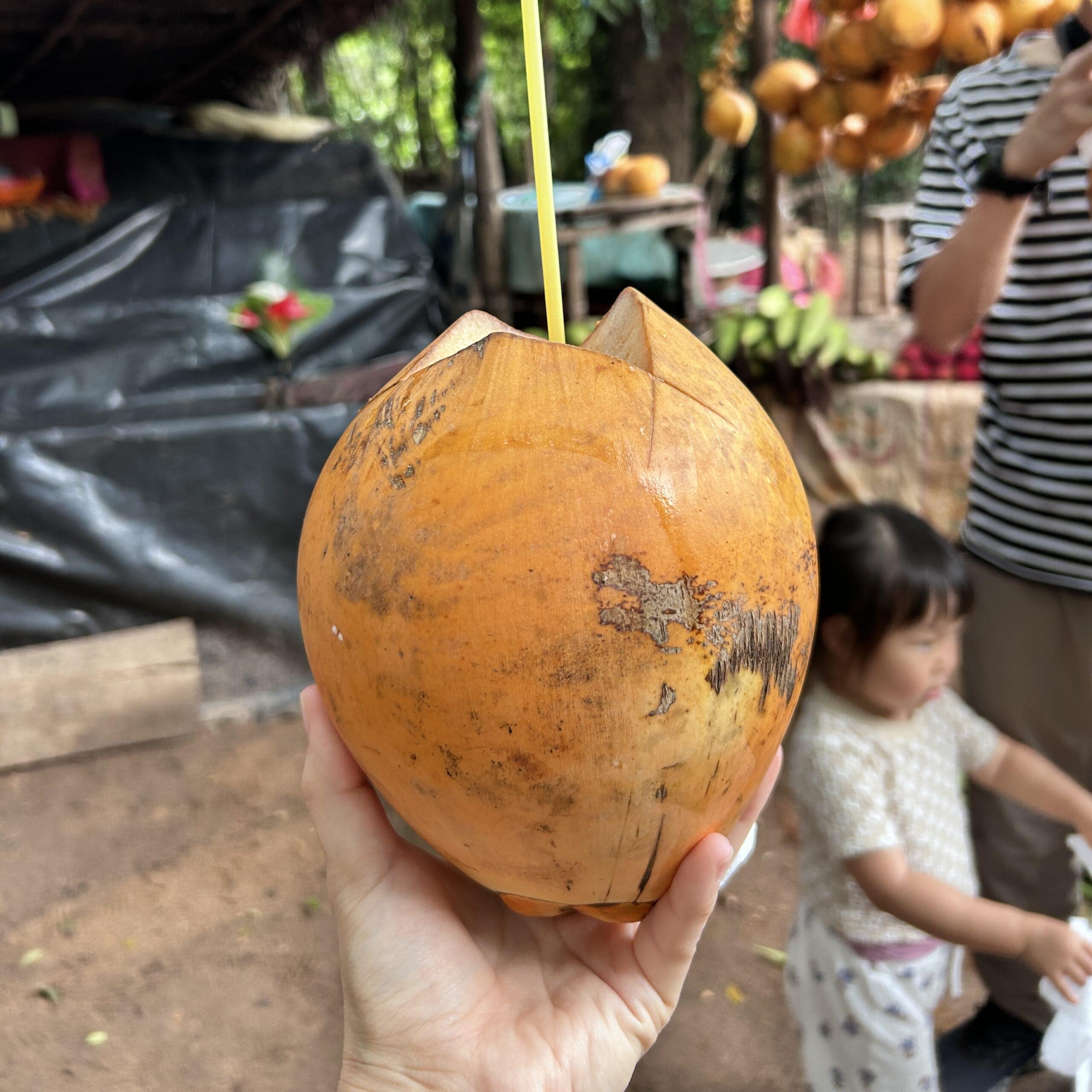 ココナッツで即席のスプーンも作ってくれて、中のプルプルの身もこそいで食べれるよ〜と教えてもらいました。