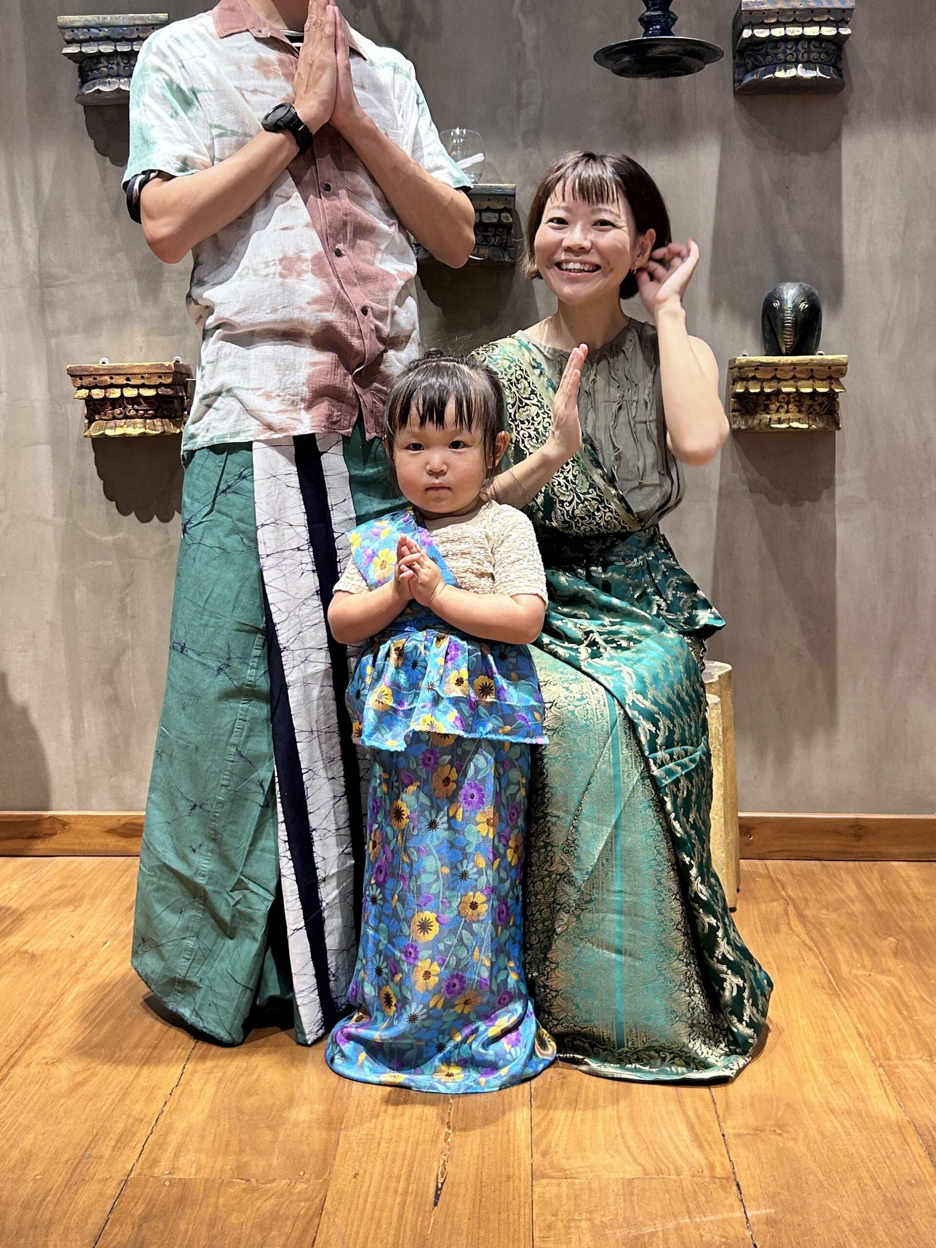 工房を見て、お店を見ていると伝統衣装着てみる?となり、家族3人とも着せてもらいました。