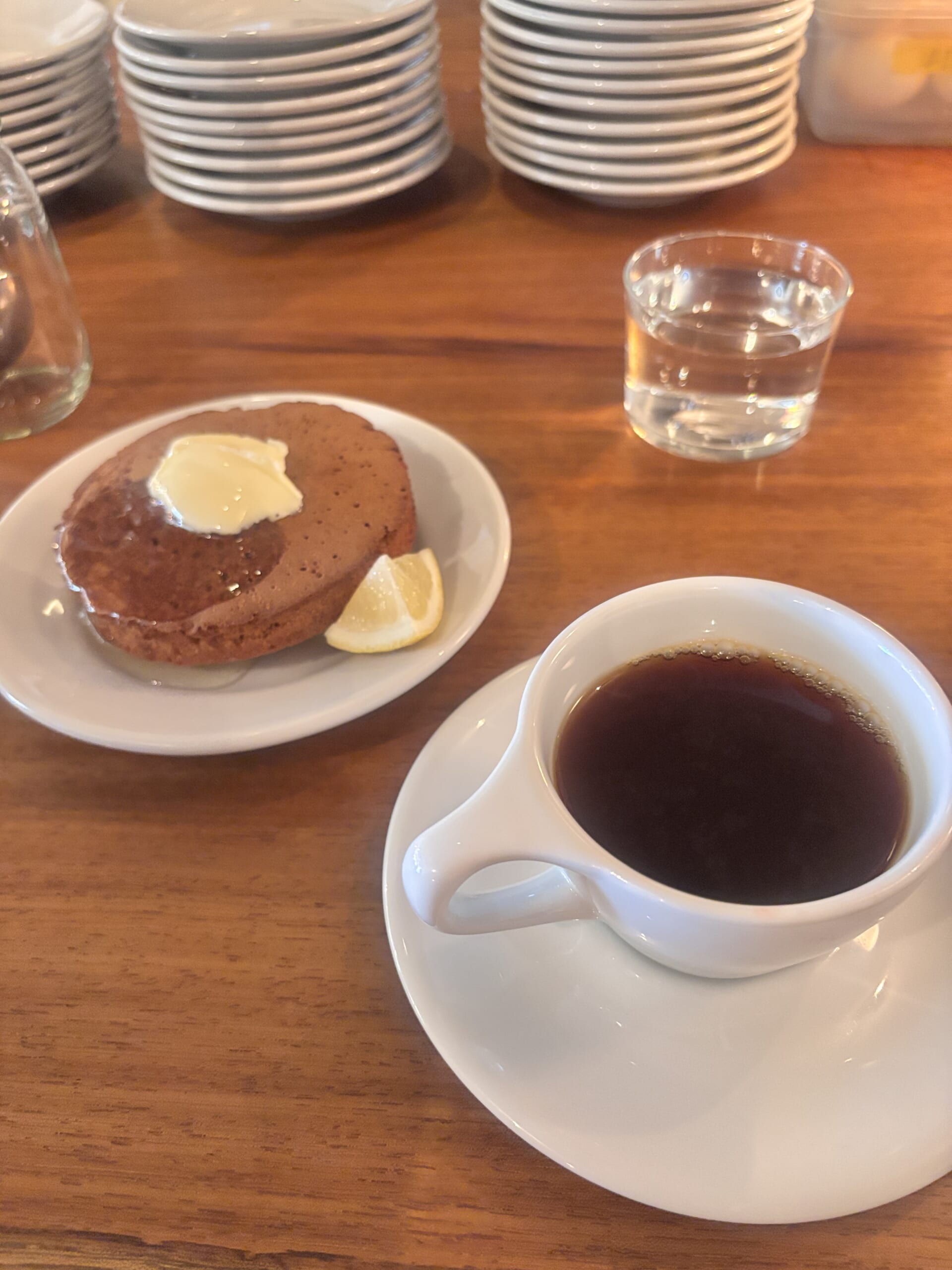 パンケーキを食べながらおしゃべりスタート
