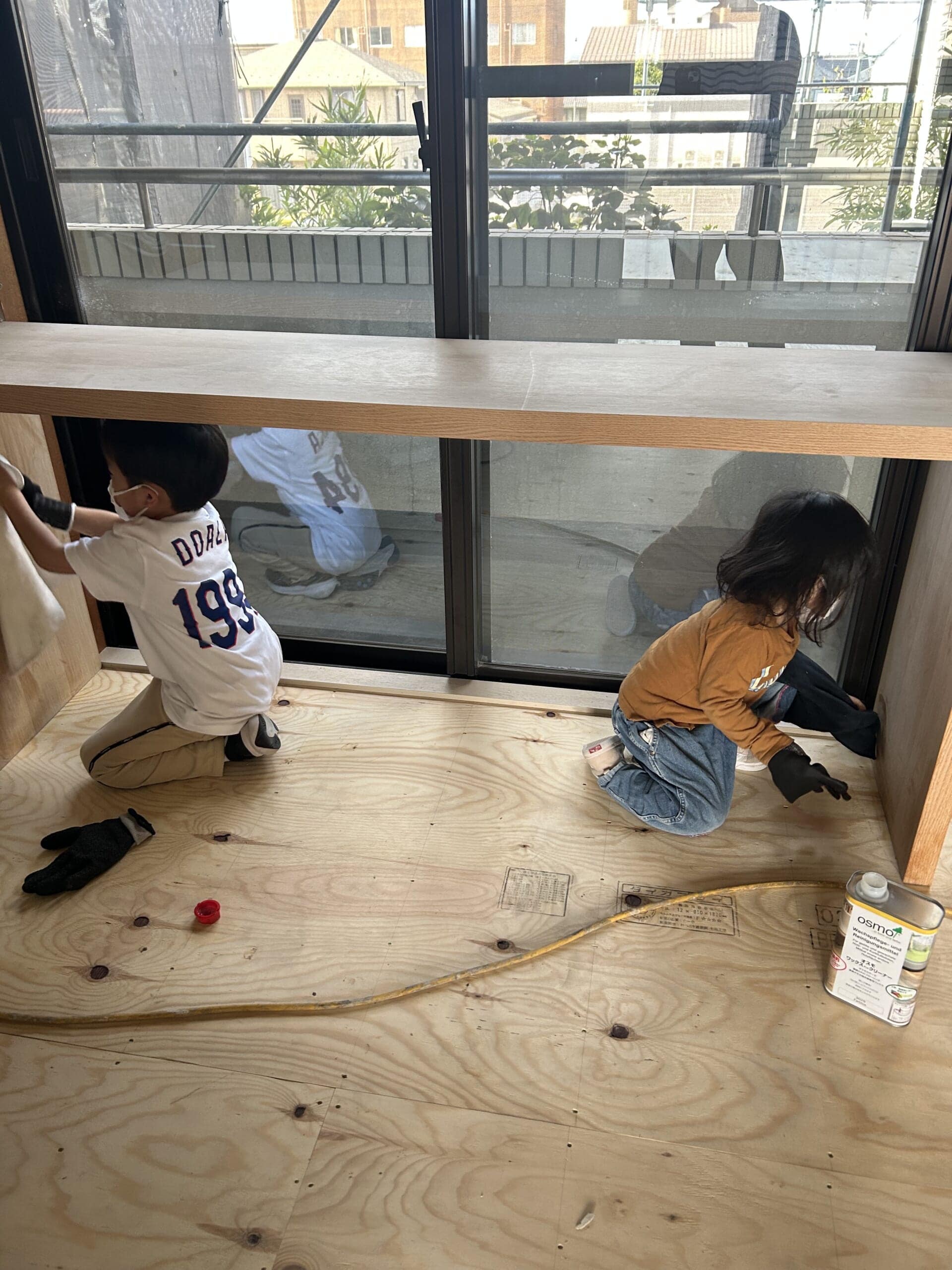 先日は下の二人と共有の勉強机にオイルを塗りこみました。