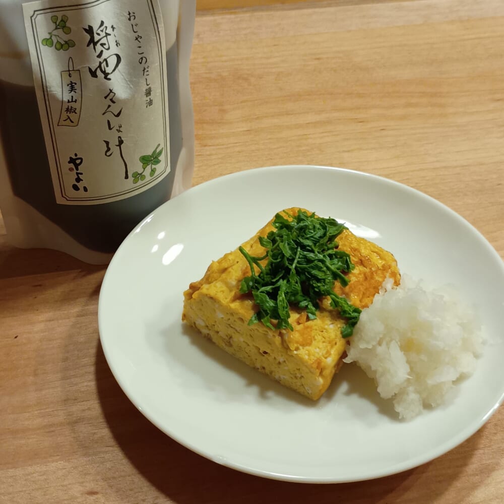 ちりめん山椒の風味が楽しめる万能調味料です。どの料理にも合いましたが、いちばんおいしかったのが出汁巻き玉子でした。醤さんしょ汁は毎月1日に発売され、数量限定ということなのでぜひチェックしてみてください。