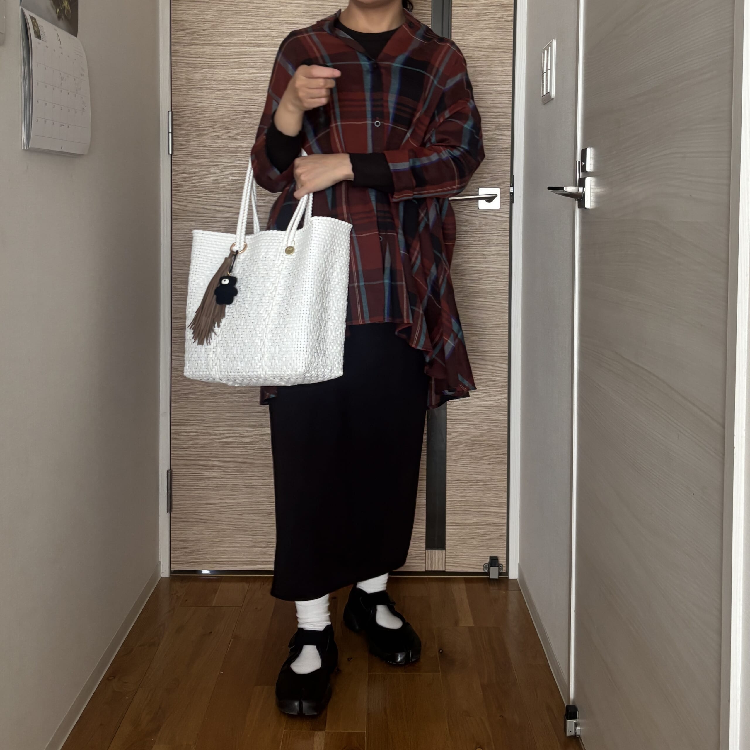 白ソックス合わせ。バッグも白にして明るさをプラスしました。