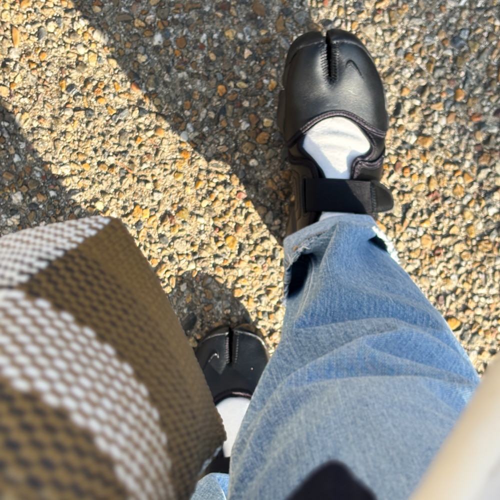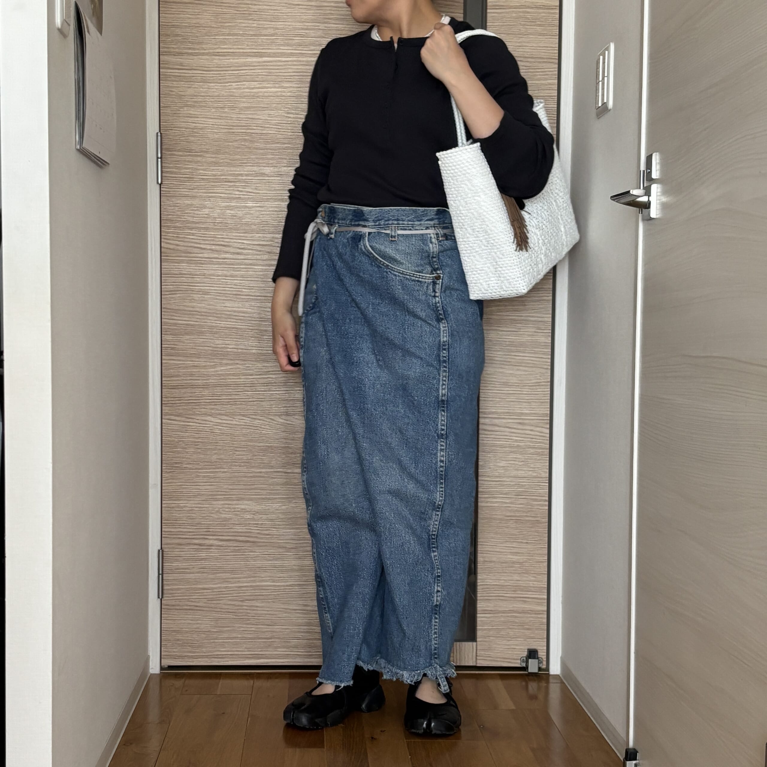 癖強デニムのカジュアルコーデも、エアリフトがレザーだとひと匙の「きれいさ」を足せる気がします。